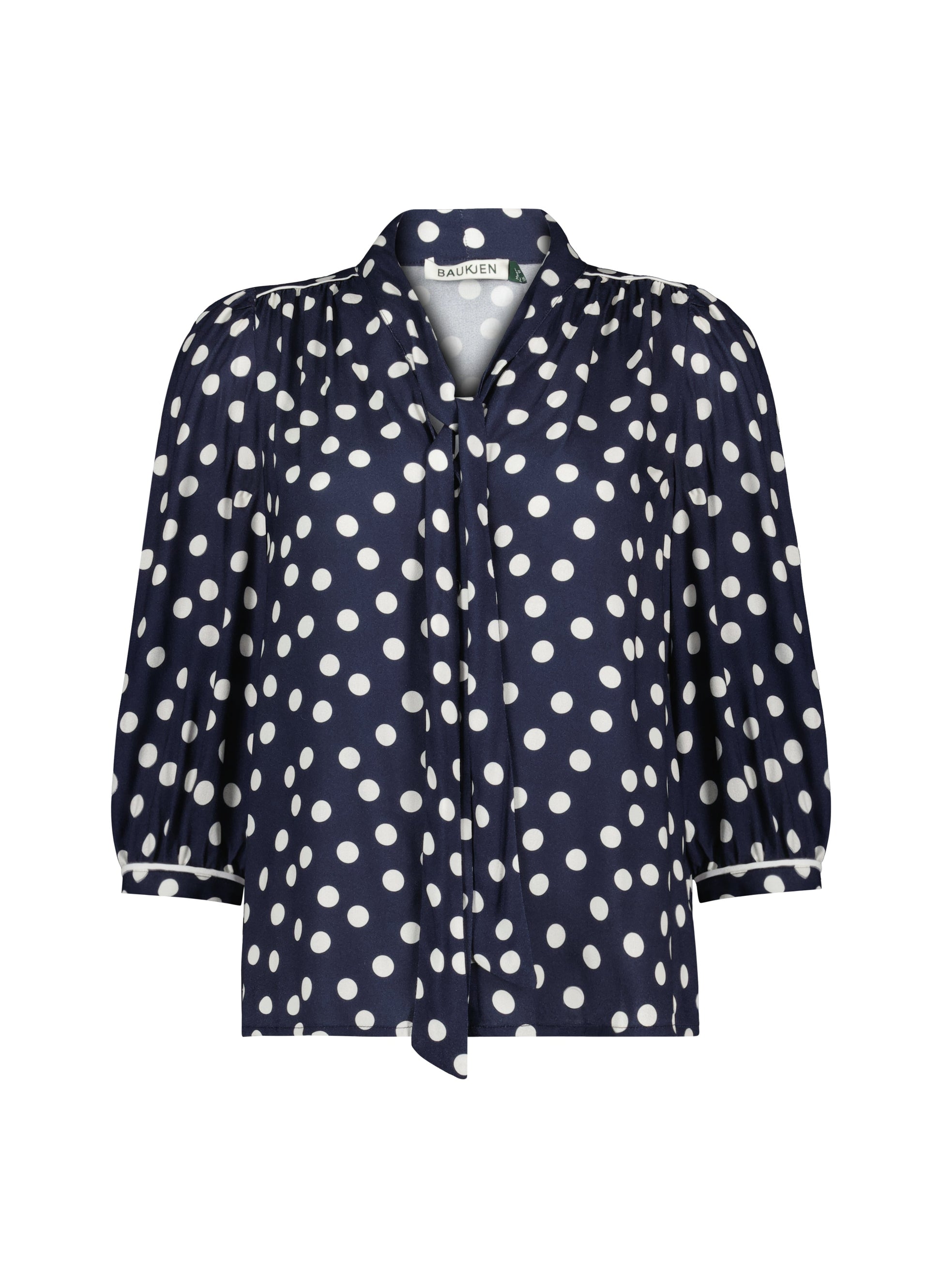 Inject a touch of newness alongside your favourite separates with the easy Amalie Blouse. This button-through style bears classic polka spots and a pair of ties which you can knot or leave loose. Cut for a relaxed fit with gathered shoulders, cropped sleeves and topped with crisp piping detail, it’s a staple you can dress up with white tailoring, or down with denim.