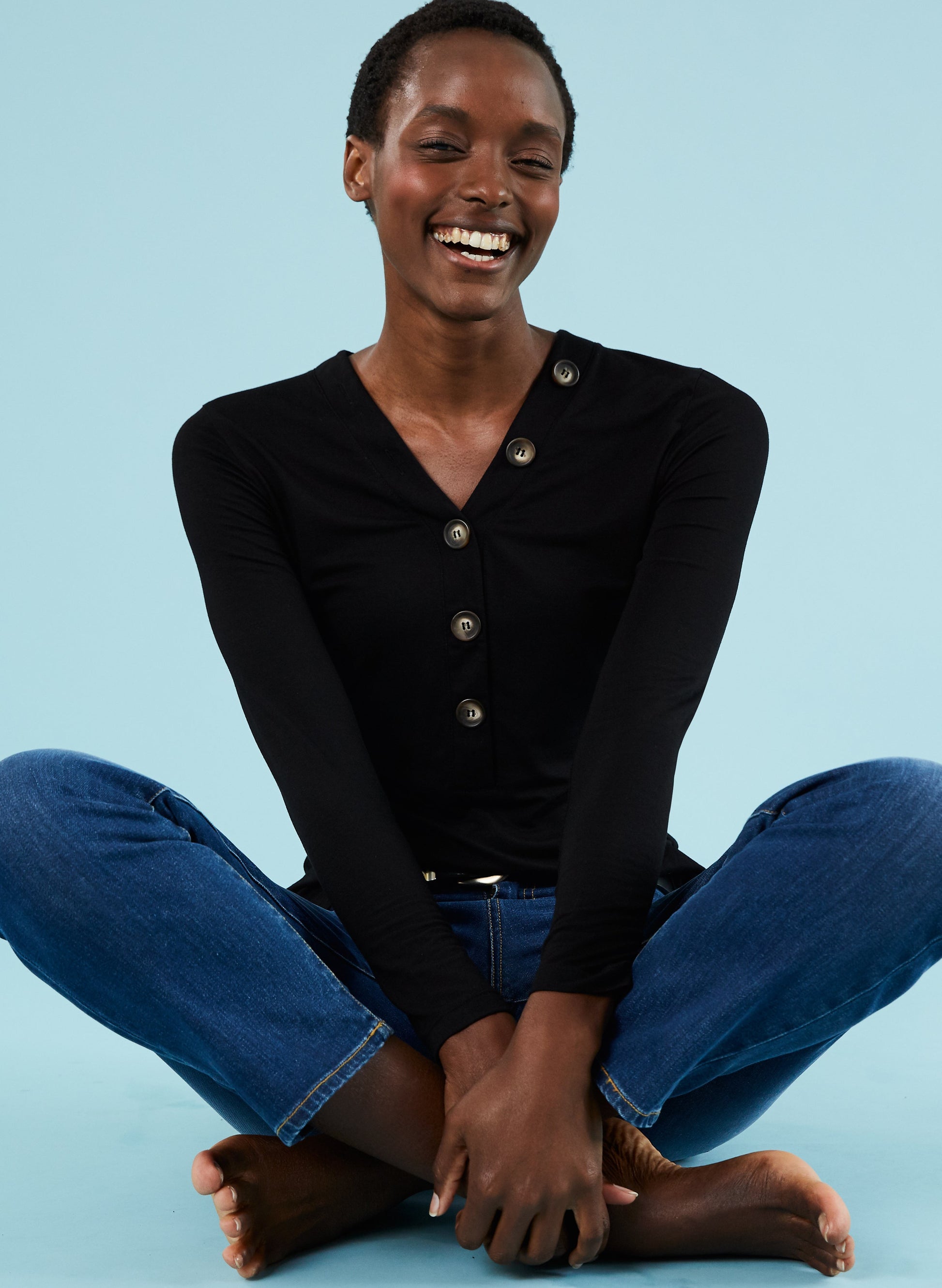 Choosing simple tops with elegant details is the perfect way to elevate your everyday looks. The Amber Top is at home in our collection of easy wearing staples, thanks to its flattering button detail v-neck line. Designed with a slim fit that tucks into cigarette pants or denim effortlessly.