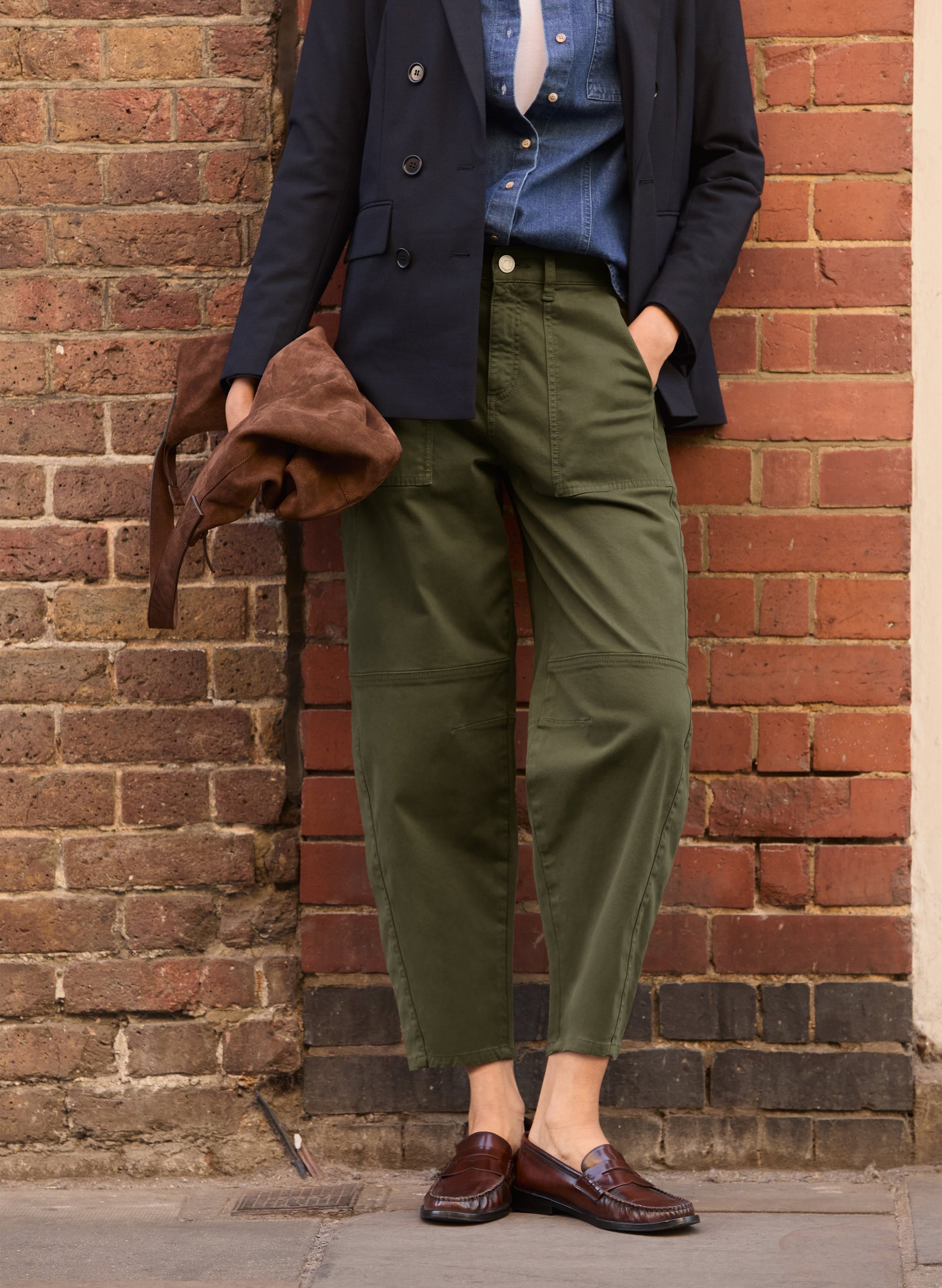 Amelia Organic Cotton Barrel Leg Cargo Trousers