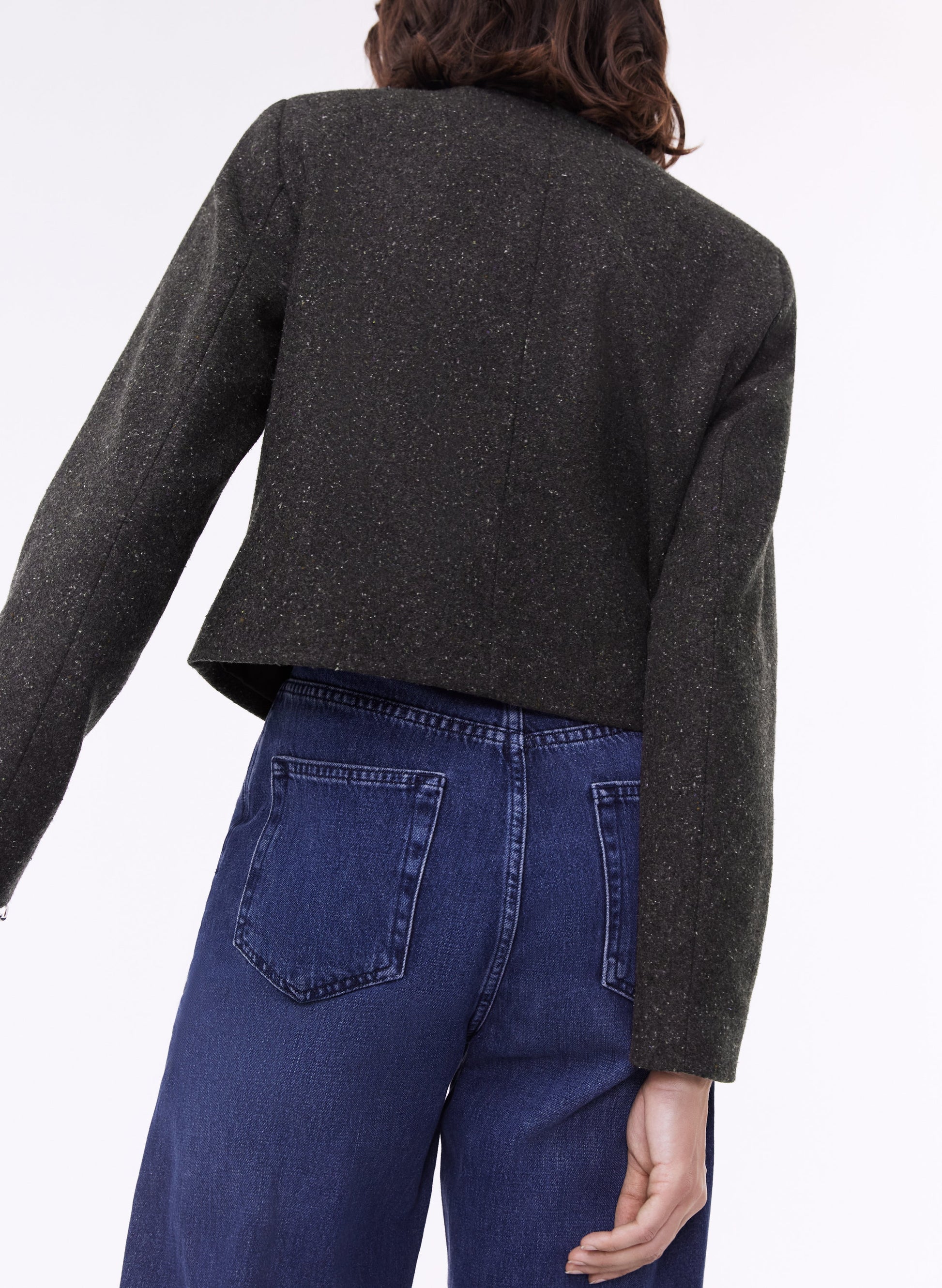 Call on a dressy jacket in a boxy fit to add a sophisticated dimension to any outfit. Anjeli is composed of heavyweight, recycled wool with flecks of tweed and domed silver buttons for a luxe touch, but its cropped fit makes it so easy to wear. Use it to elevate jeans and a simple white tee the French way or go for the full suit look with the equally fabulous Marianna skirt.