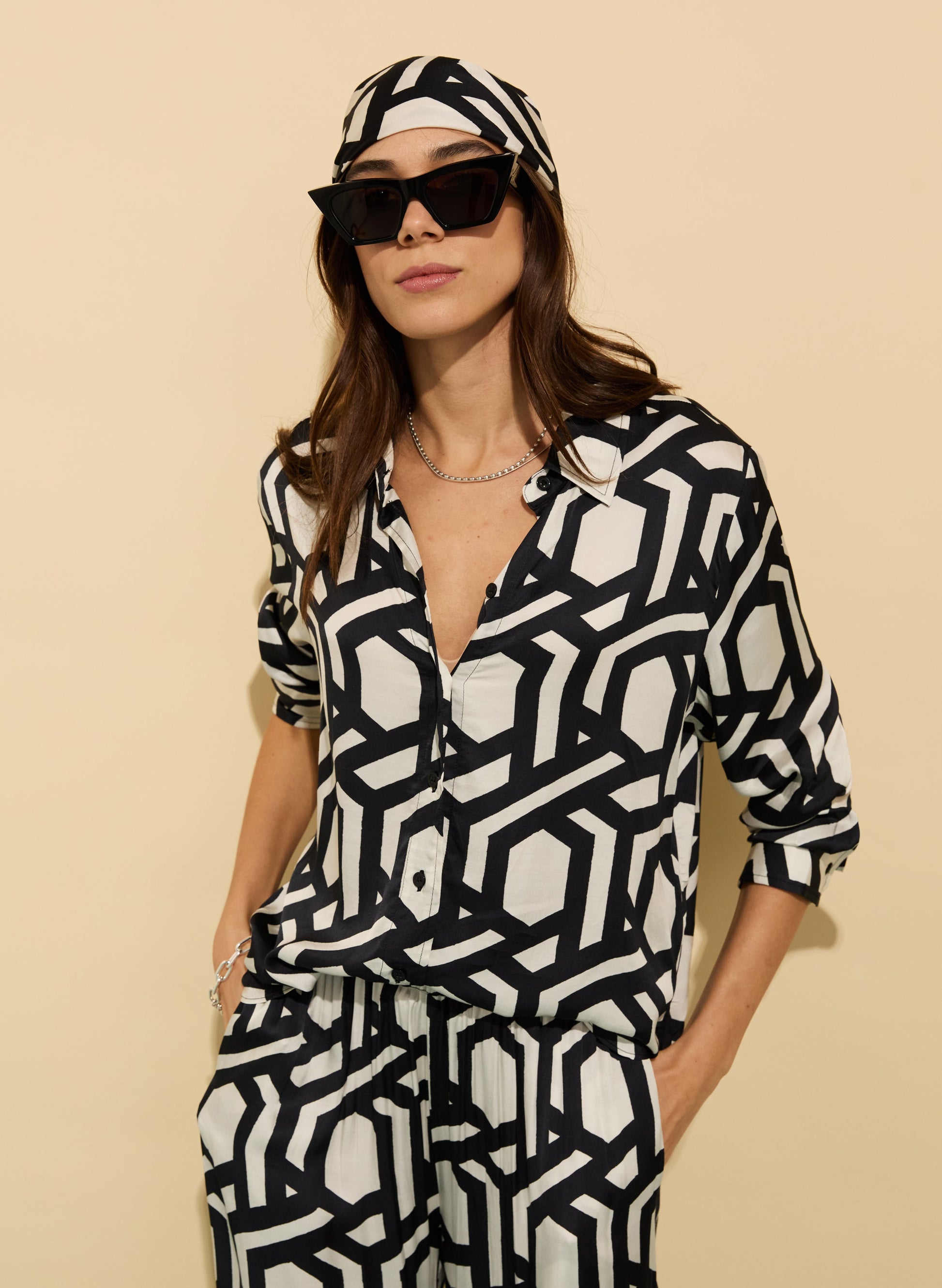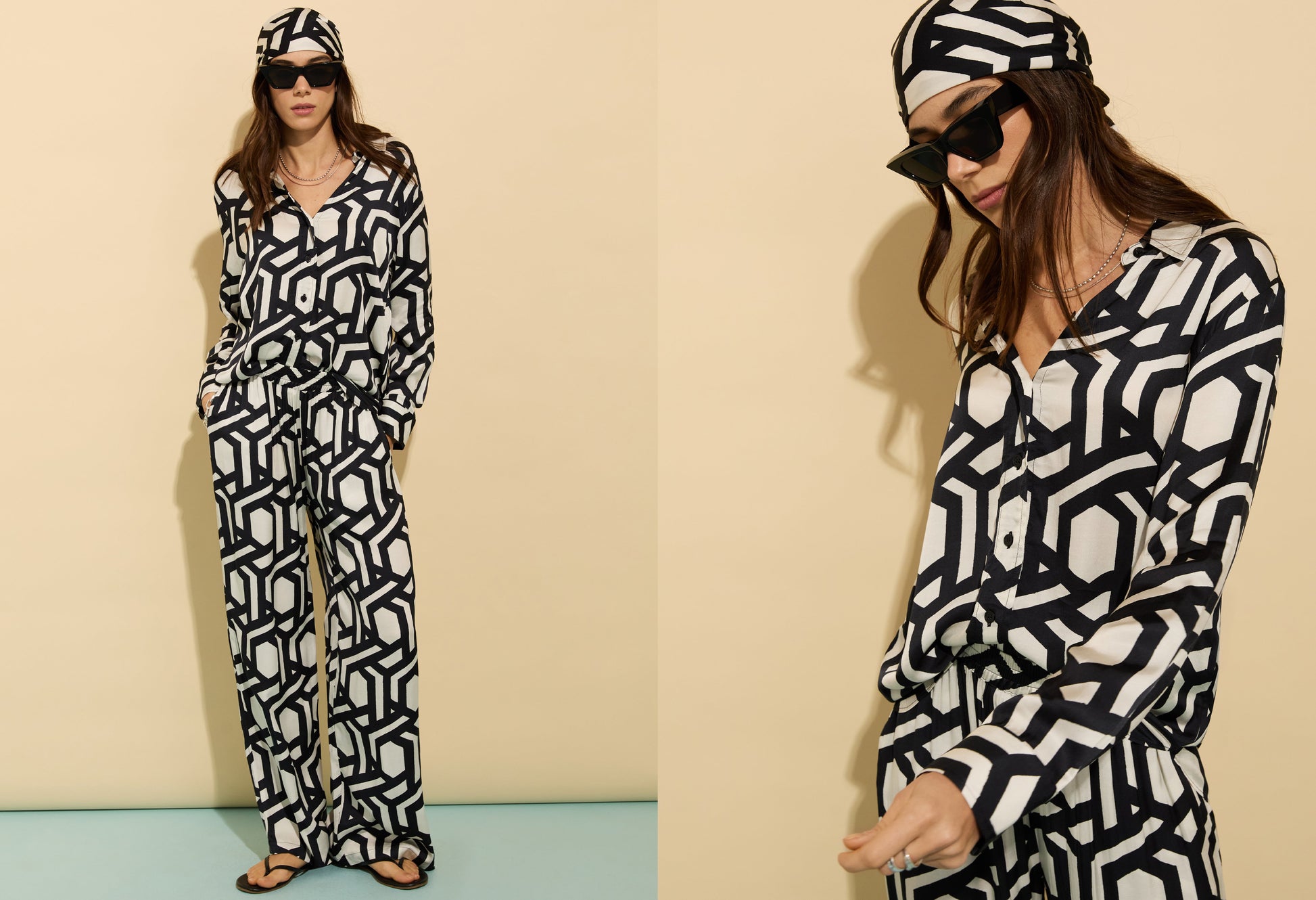 Glamorous and graphic, feel ready for anything with the Ashyln Satin Shirt. This chic button-down features a statement print which will do all the hard work for you - just add a red lip and the coordinating Aspen Satin Scarf as a headscarf! So easy to wear with black trousers or white jeans, our money is on a top-to-toe co-ord with the coordinating Kay Satin Wide Leg Trousers.