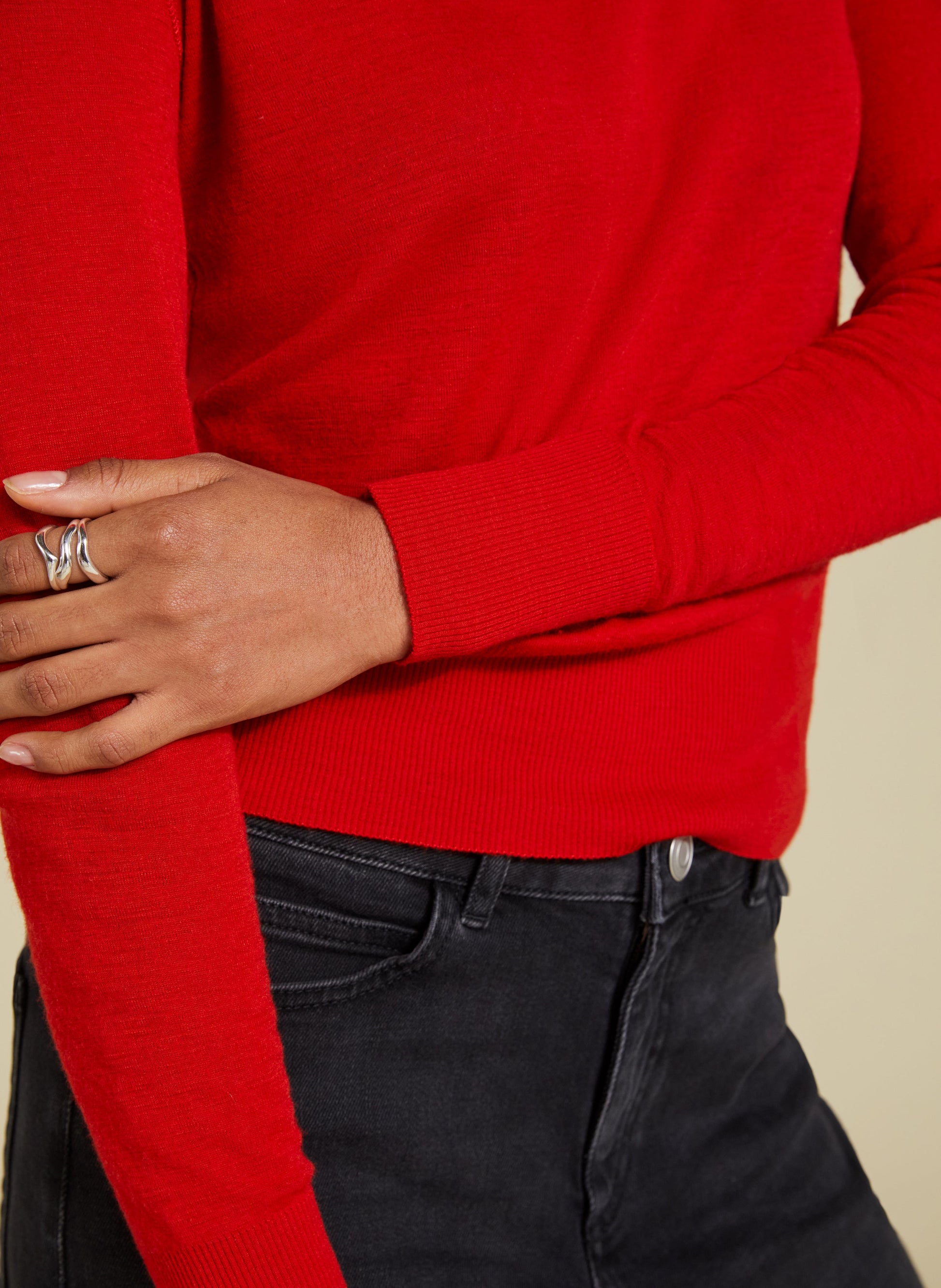 We challenge you to find a knit which feels as gorgeous as this! The Augustina Wool Blend Top comes in a semi-sheer, wool blend jersey which is so soft to the touch. Fitted and ideal for layering, we’ll be styling it under blazers on office days, and when the weather really bites, under v-neck jumpers. In a mood-boosting shade of Crimson, it provides the perfect colour pop against tailored trousers, dark denim and skirts.