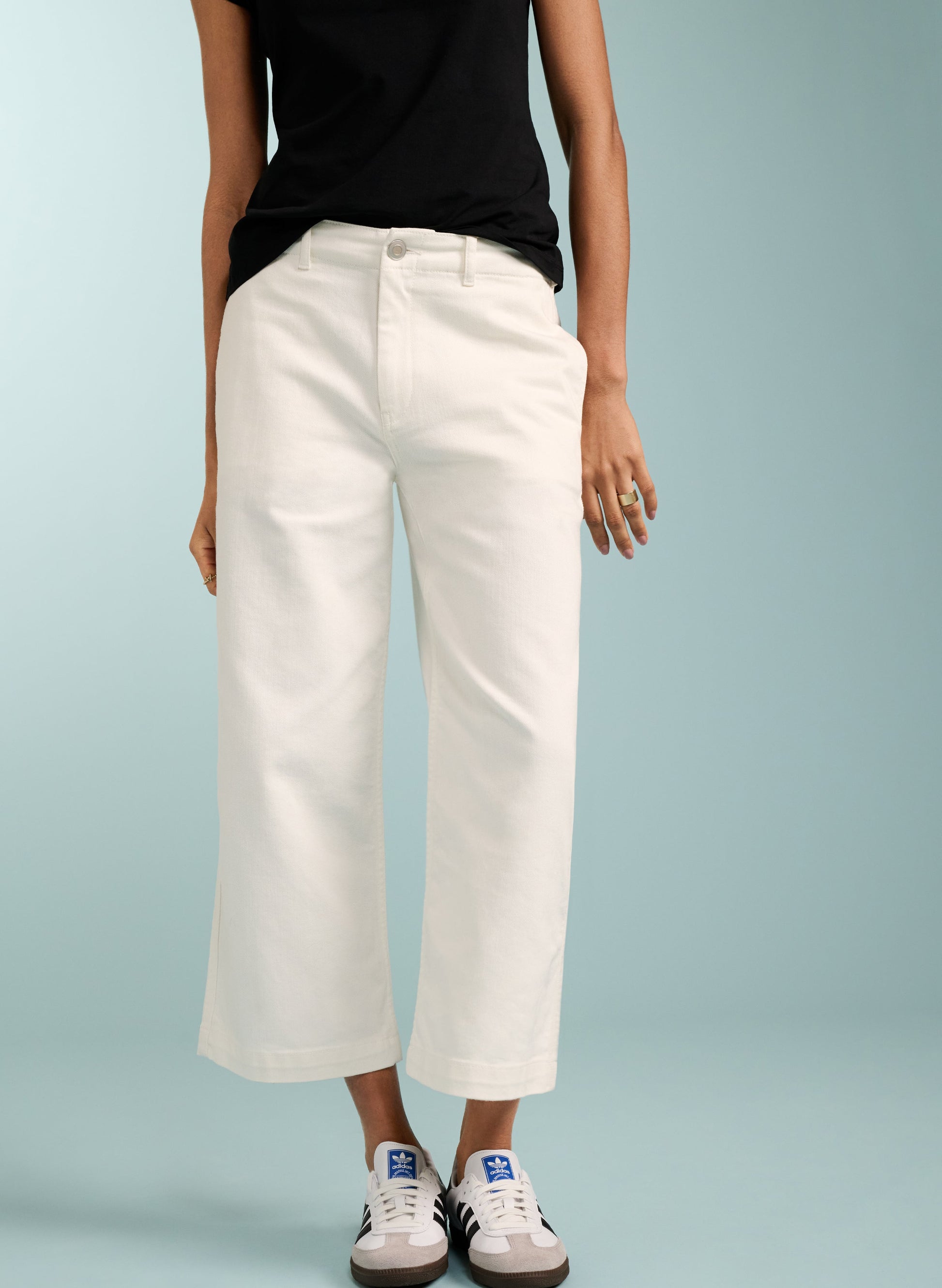 Wide-leg jeans are a perennial staple: wear with boots during the cooler months, then swap for ballet pumps or chunky sandals in the warmer months. Ours come in a flattering, stretchy, slim fit through the hips, which gently tapers out into a contemporary wide shape. Cut from organic stretch cotton, these also boast a lower environmental impact.