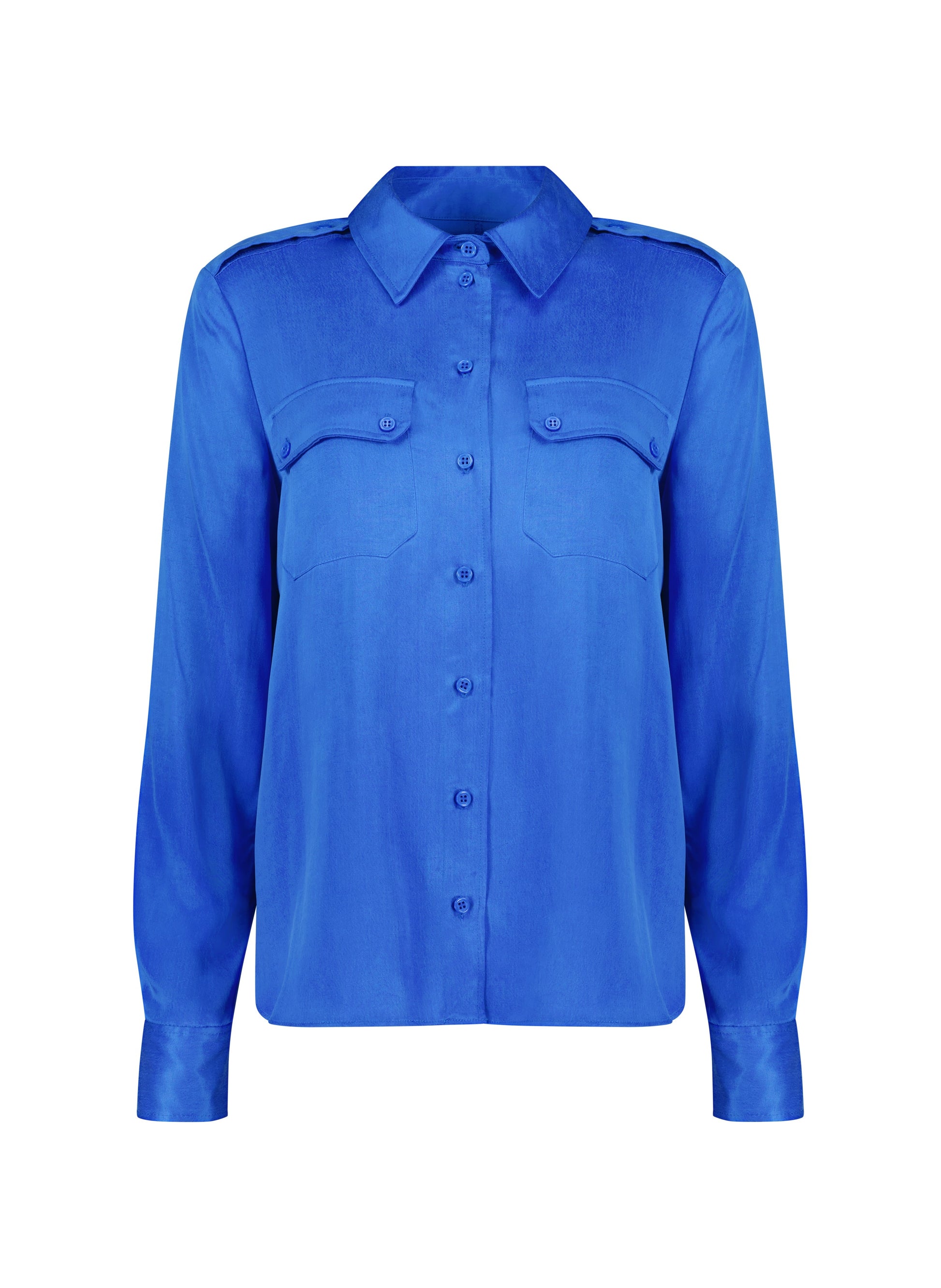 We’re obsessed with the beautiful Azure blue of this shirt! Carolyn is a utility-inspired style with patch pockets and epaulettes, and is crafted in recycled Cupro for a unique, silky sheen. Tuck into denim to update your jeans or go for a dazzling co-ord look with the matching Marian trousers.