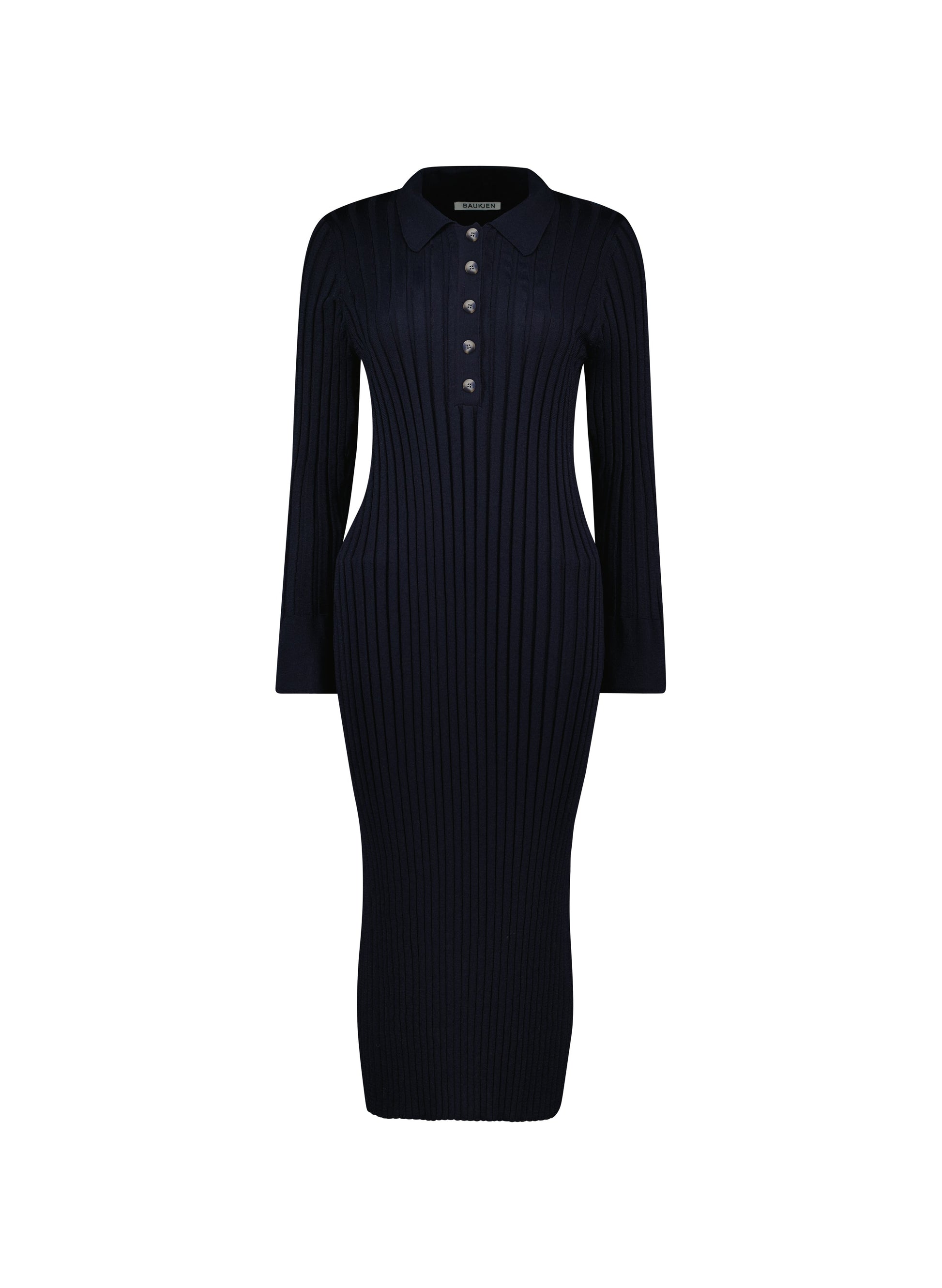 A stretchy, knitted dress in classic navy is the answer for easy, smart workwear. Cece simply pulls on with a short placket and is elevated with a sharp collar. A back split guarantees comfort and movement. Style it with knee boots, loafers or trainers and play around with a belt to put a spring in your weekday step!