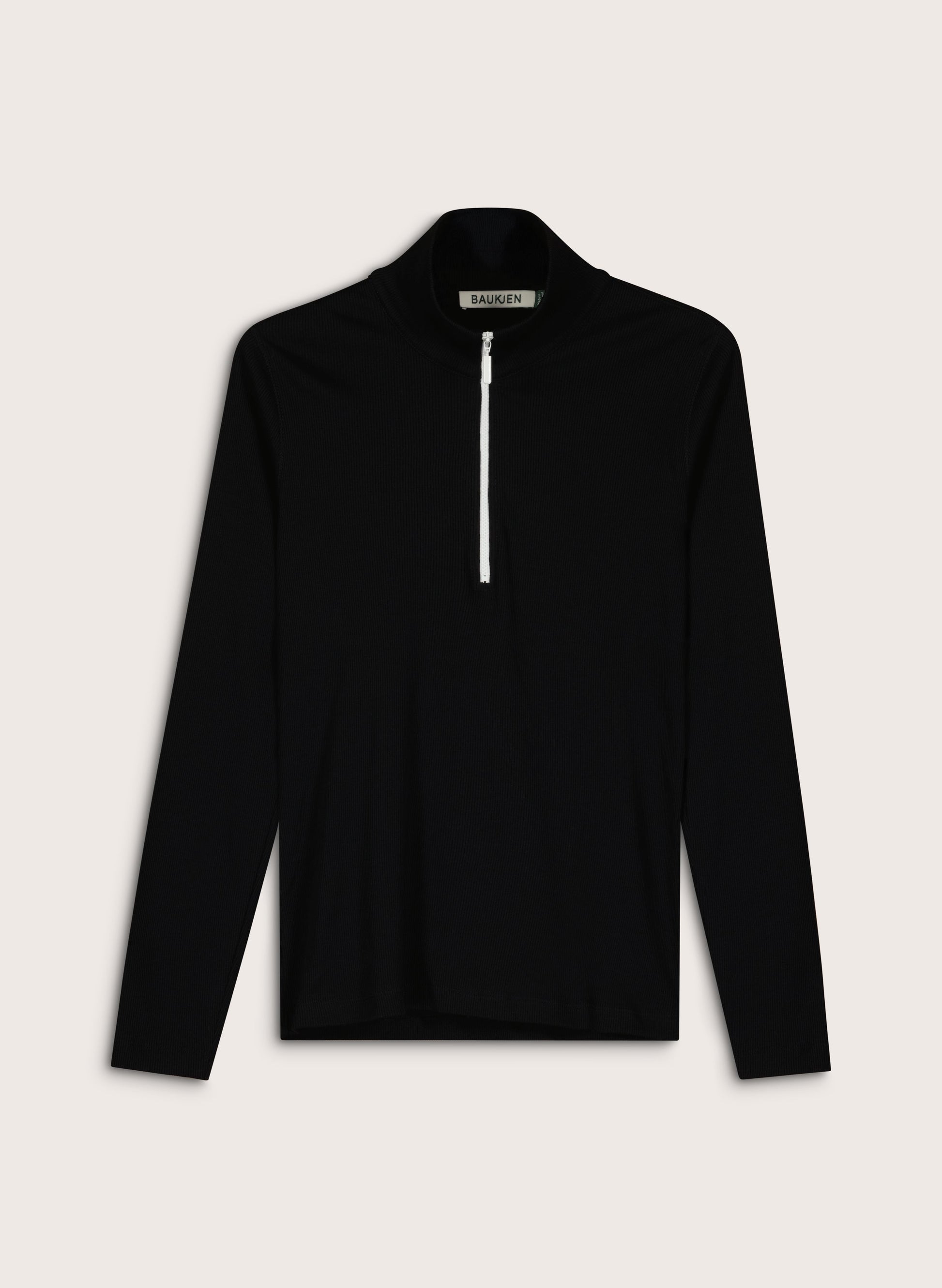 Our Clayton Zip Turtleneck Top puts the fun into layering. Crafted in soft and stretchy organic cotton rib jersey, it’s cut for a slim fit with a high neckline. The chunky white zip, which is crafted from recycled materials, creates a cool contrast. Easy to wear on its own, we’ll be styling it under blazers for a sporty accent.