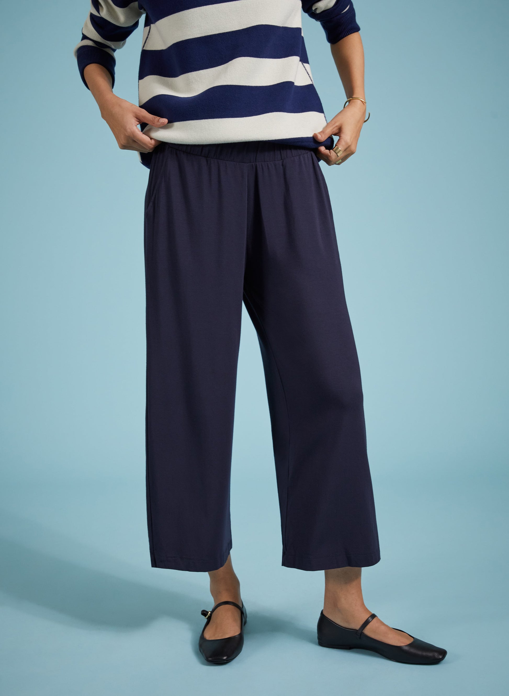 Just like our best-selling Palazzo Trousers, but cropped - and in a variety of versatile colour options. Expect the same comfortable pull-on elasticated waistband and contemporary, wide-leg shape. Wear at home with a sweat top for lounging or with sneakers and a tee for an easy weekend outfit.