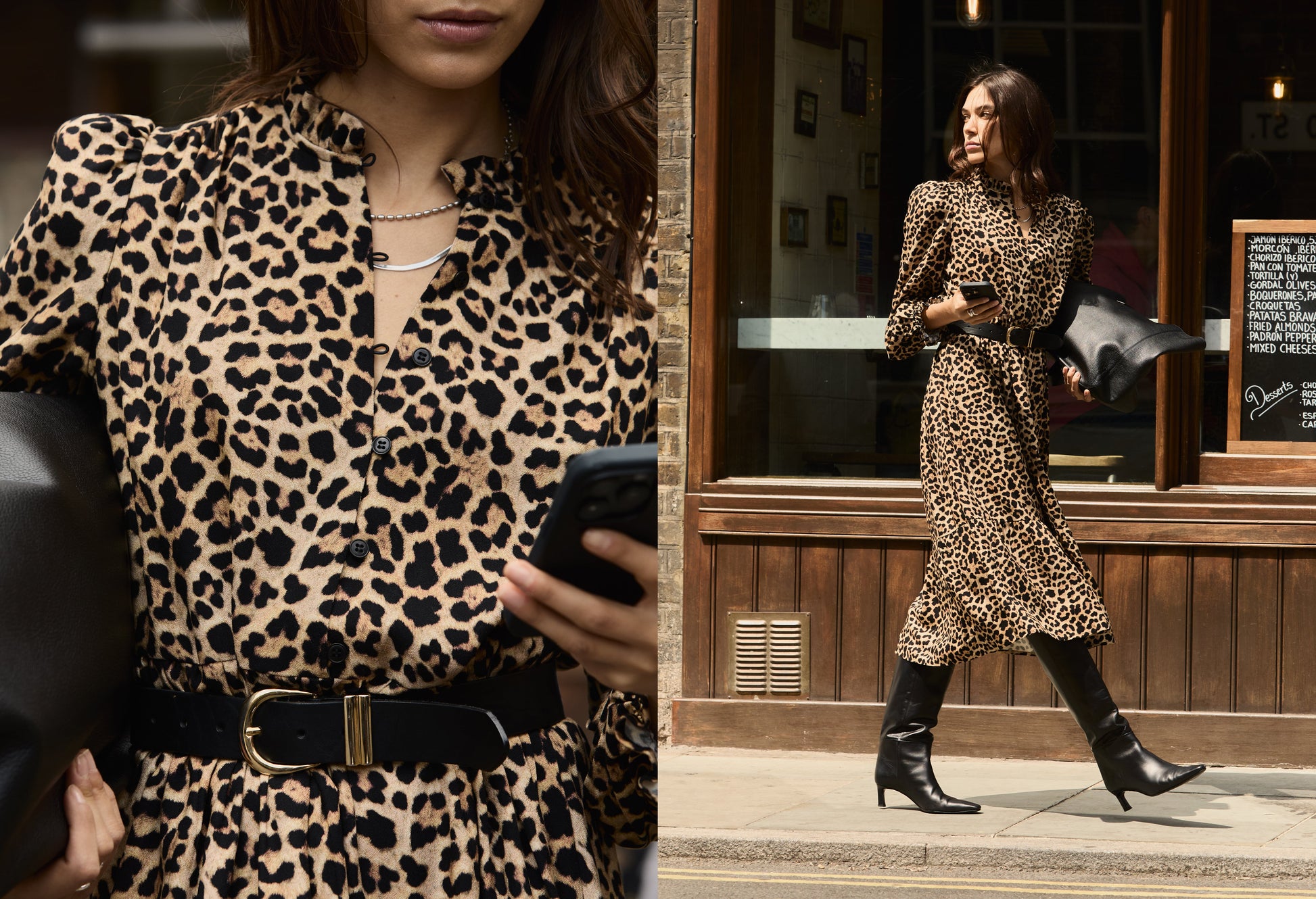 Timeless and easy, the Daryn Printed Midi Dress is one of those styles you’ll keep calling on for years to come. There are so many ways to wear it: with loafers and a blazer for the office, with heels and drop earrings for date nights, and knee-high boots and a rollneck come winter. In a classic leopard print, it features a button-down top and a tiered, swishy skirt. The collar is topped with a pretty frill and the cuffs are smocked for comfort. And best of all, it’s making use of surplus fabric!