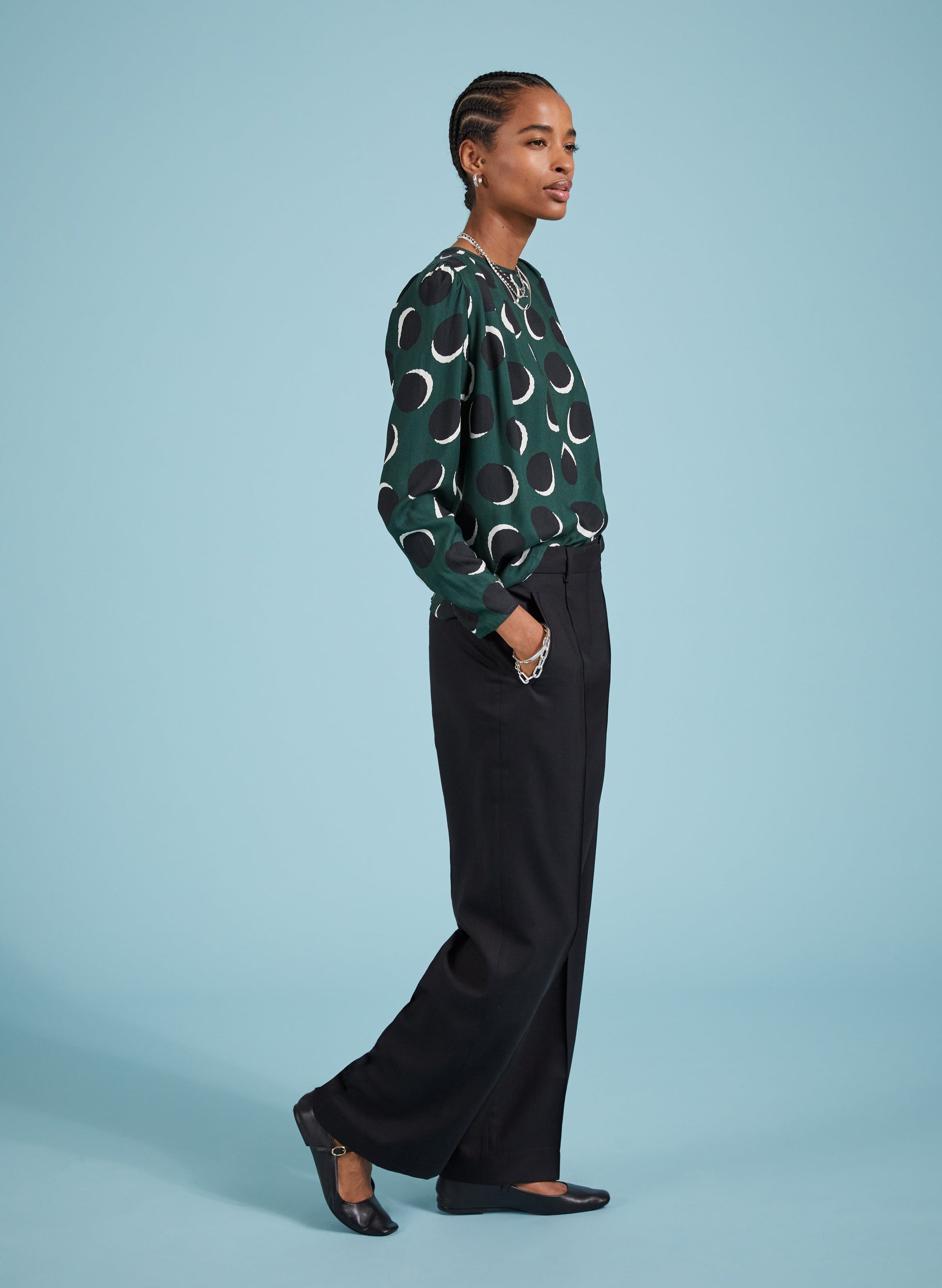 Dottie is a printed blouse that is smart, comfortable and versatile. And will deliver when it comes to dressing for work or dinner. With its shadow spot pattern and beautiful drapey fabric, she won’t let you down. Wear it with tailored trousers for a look that’s as effortless as it is elegant.