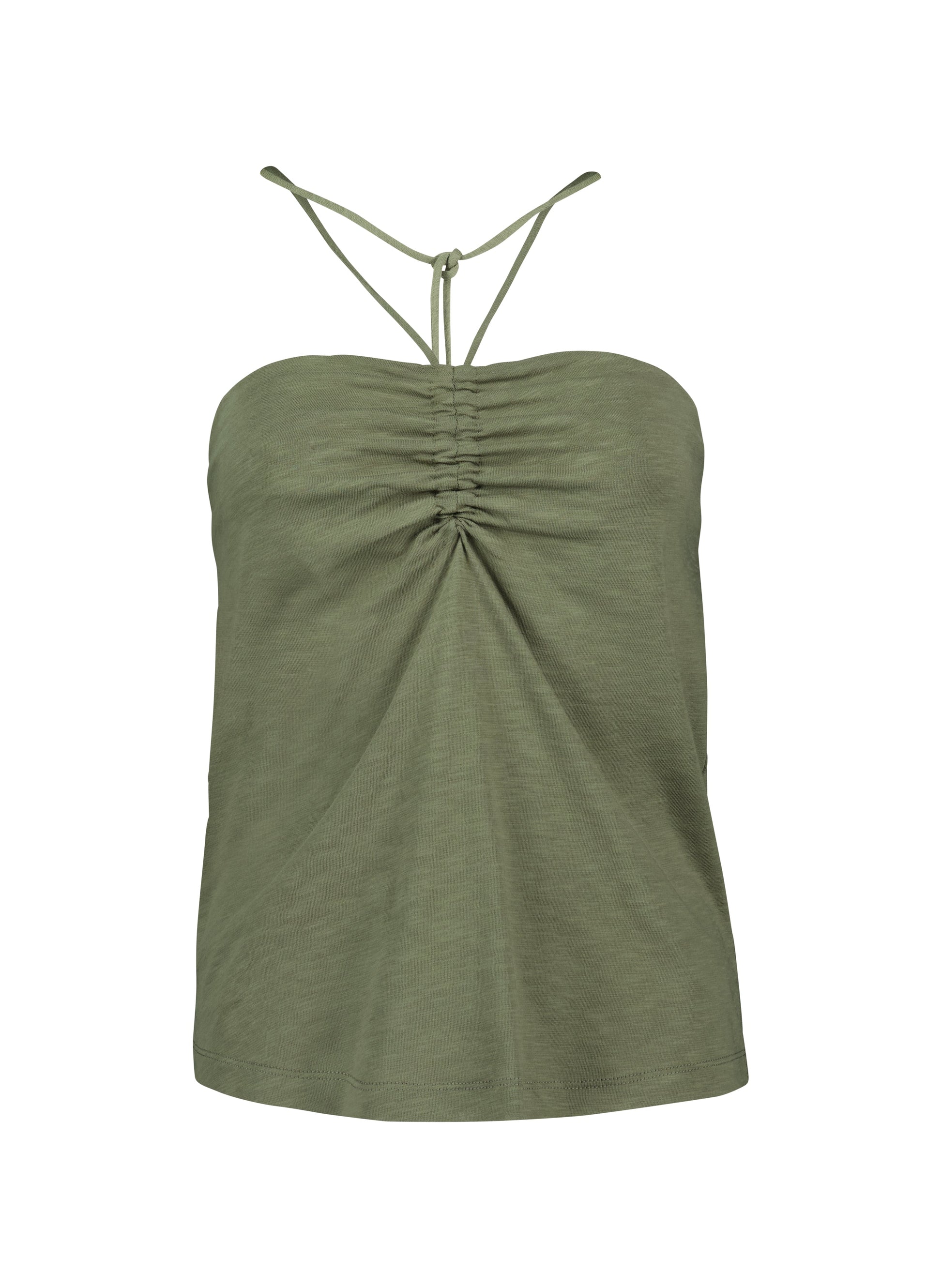 Summer and heatwave dressing is made easy with well-cut tops in natural materials. Edna in soft, organic cotton jersey is a classic halterneck with thoughtful design details: the front is ruched around the bust for shape, while the back is elasticated to keep it in place. Wear with your favourite shorts for an easy holiday outfit.