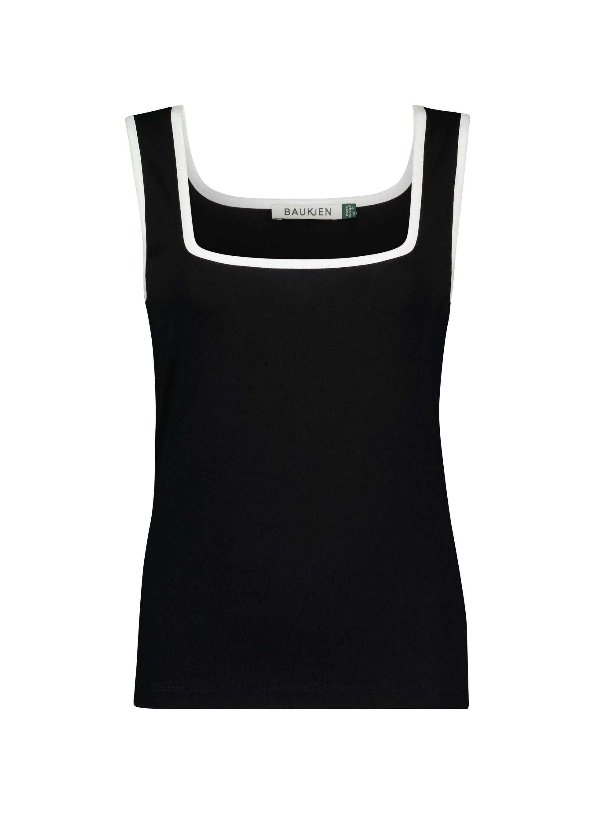 If vest tops are a staple for you in the warmer months, then Ellie is for you. This style in soft and stretchy jersey is elevated with contrast binding and a square neckline which frames the chest. Cut with wide straps to accommodate a bra, it will add a touch of easy elegance to jeans and shorts.