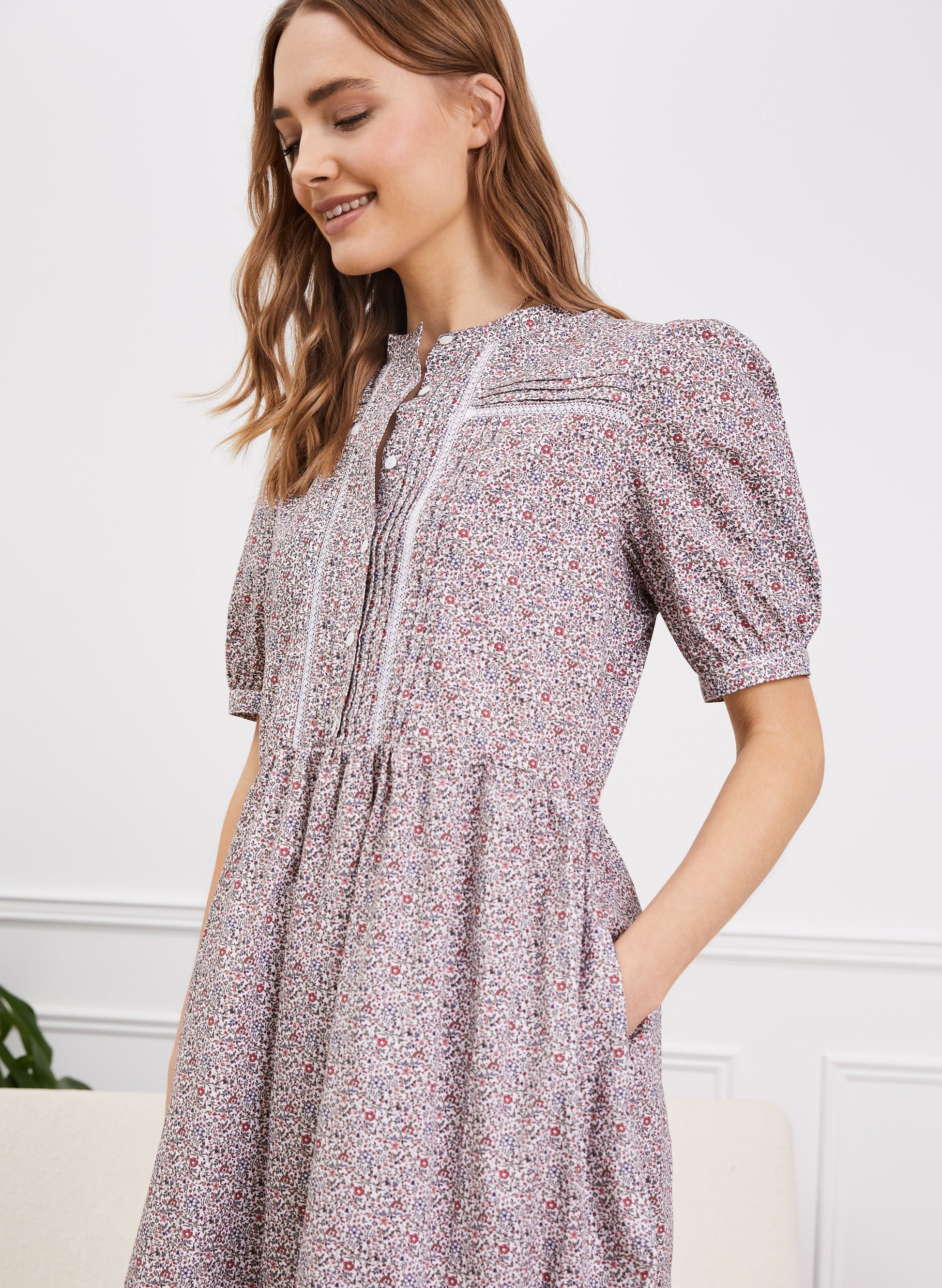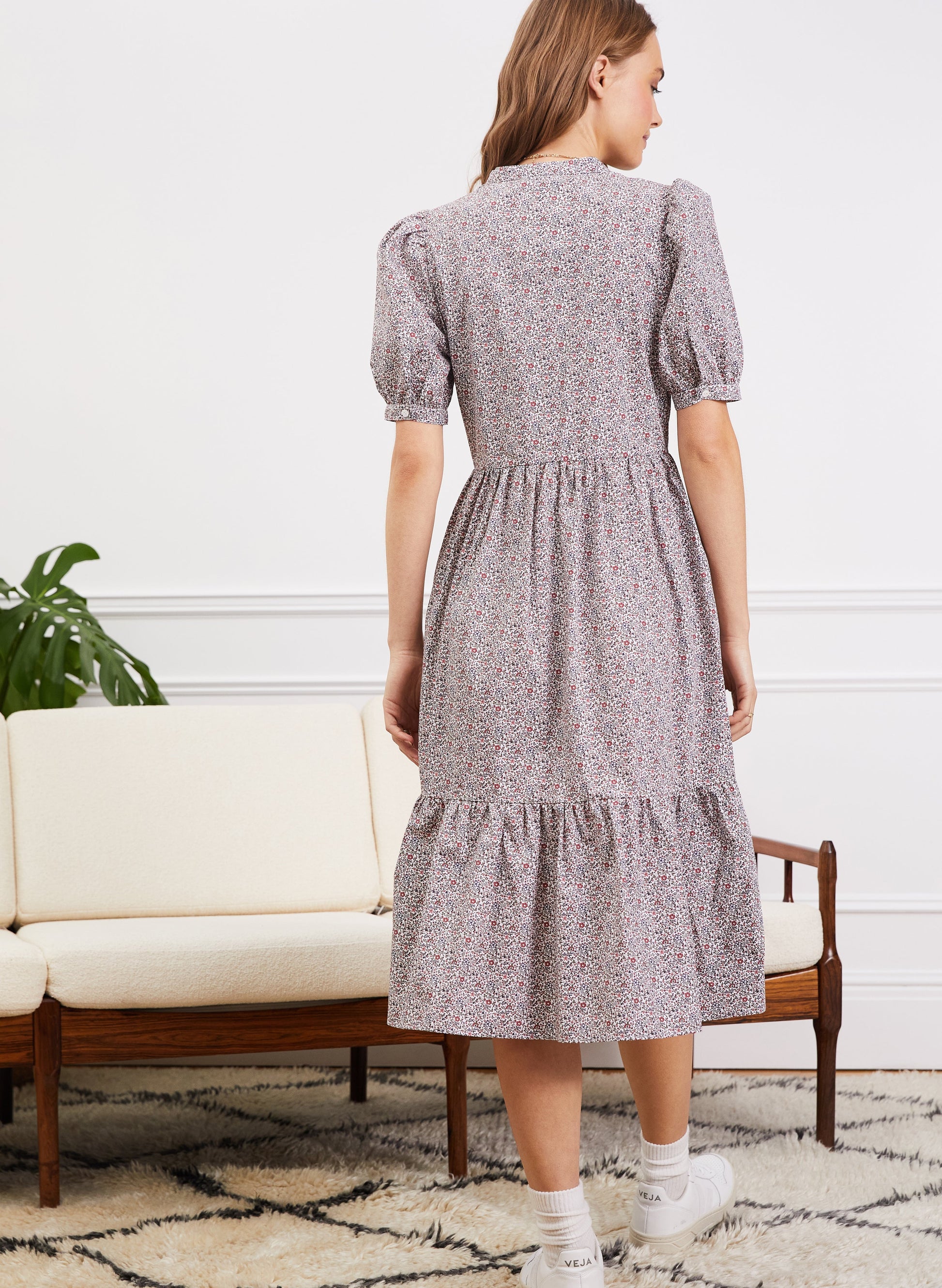 After an easy, on-trend dress for spring summer? Emily, with its charming ditsy print and prairie-style design, is it! This feminine style is crafted from organic cotton and comes with the sweetest of vintage-inspired details, like lace inserts and pintucks around the bodice. We’ve styled it here with trainers, but chunky ankle boots and a leather jacket would also look great.