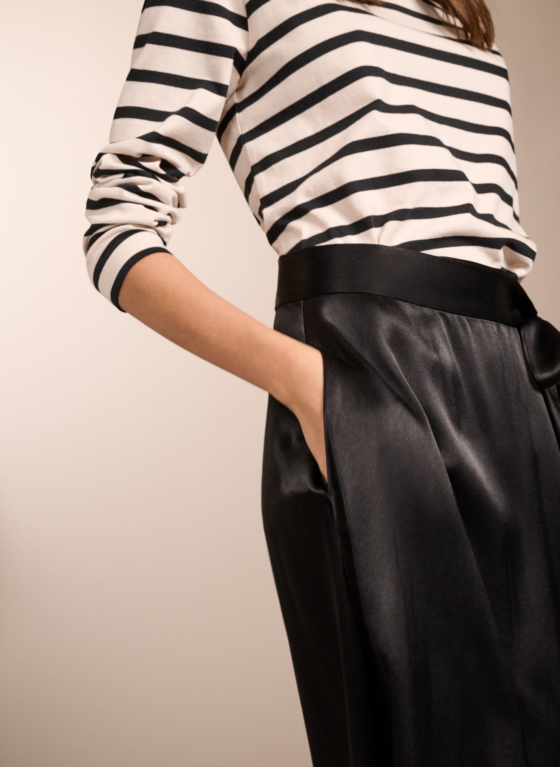 Federica is a chic wrap skirt we’ll be styling with a crisp shirt and low heels for evenings out. Crafted in satin crepe, it features a pair of coordinating fabric ties on the outside, and a fluid, waterfall detail. Get maximum wear out of it by styling it with a neat cardigan for the office.