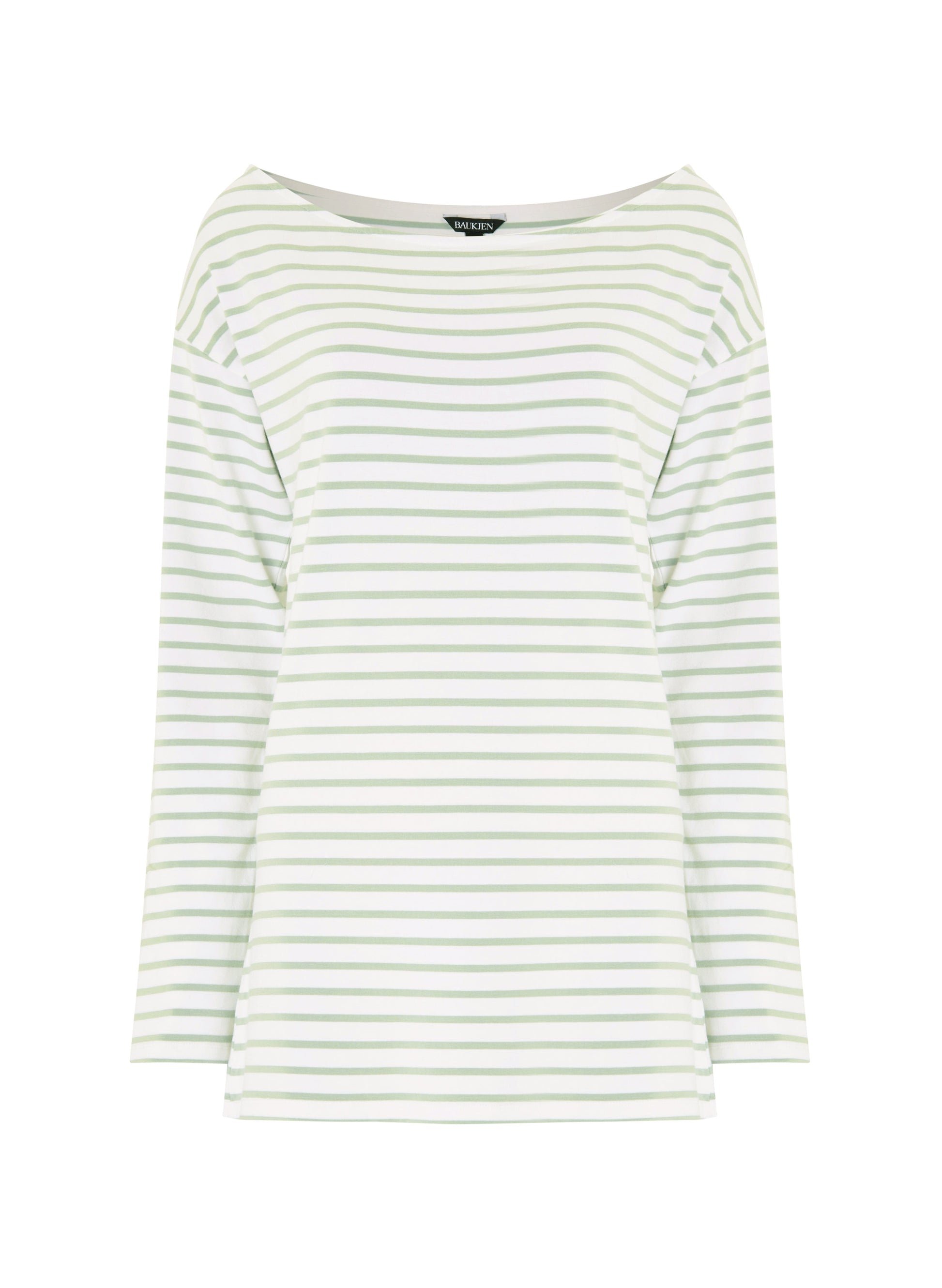 At Baukjen we love stripes and this season we've updated the classic Breton top. The Jade features stripes in sage green (a colour echoed across our spring collection) and a super-wide neckline which you can style across one shoulder. Crafted from EcoVero jersey, it's the perfect partner to jeans or our Organic Dungarees.
