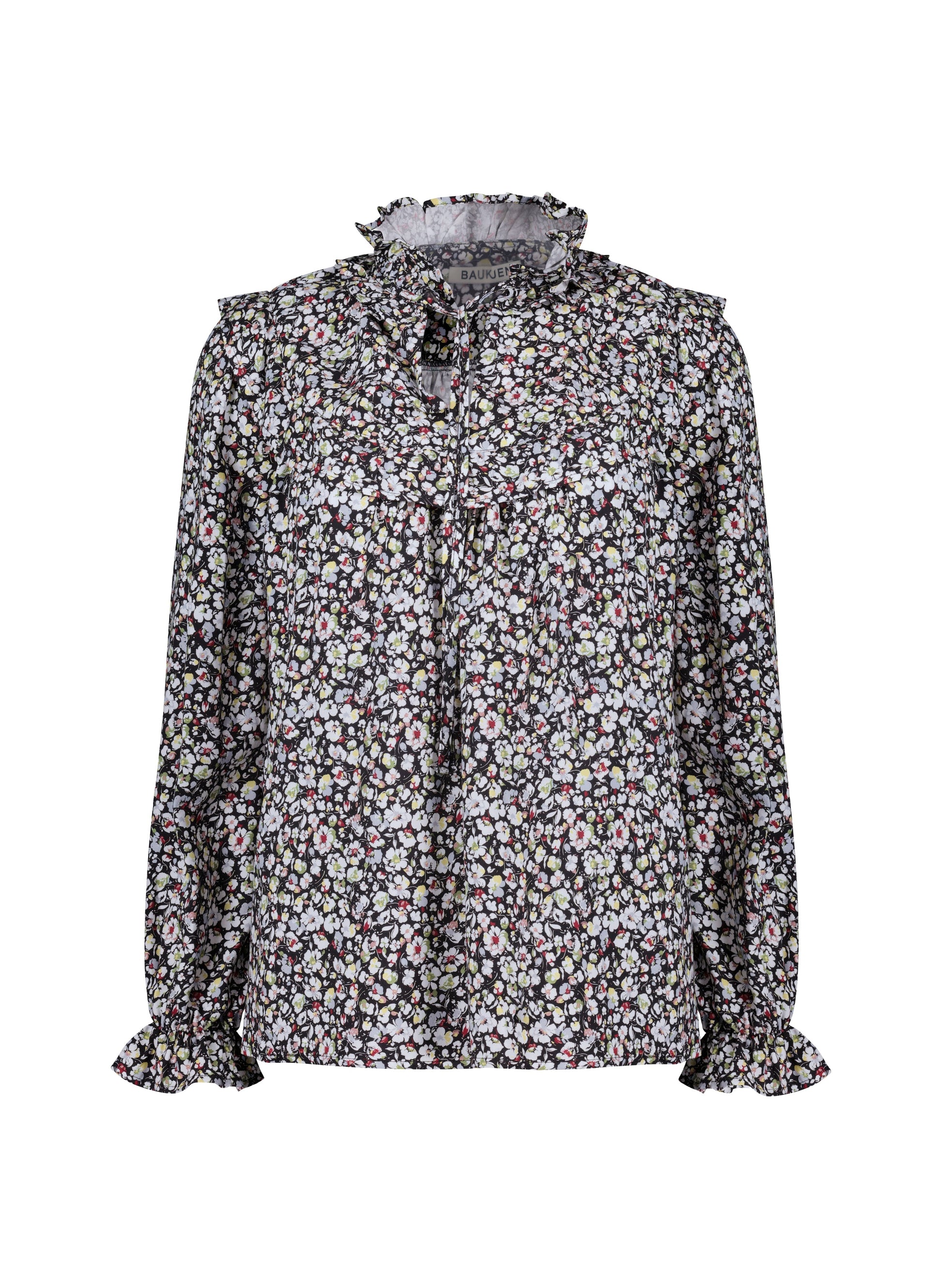 Add a touch of 70s romance to your wardrobe with Jordyn. This easy blouse boasts a notch neckline with a frilled collar and neck ties, which you can style open or fastened. And we’ve added more ruffles to the top of the shoulders and along the front bib. Wear it with wide-leg jeans and heels and let the sweet ditsy print transport you back in time…