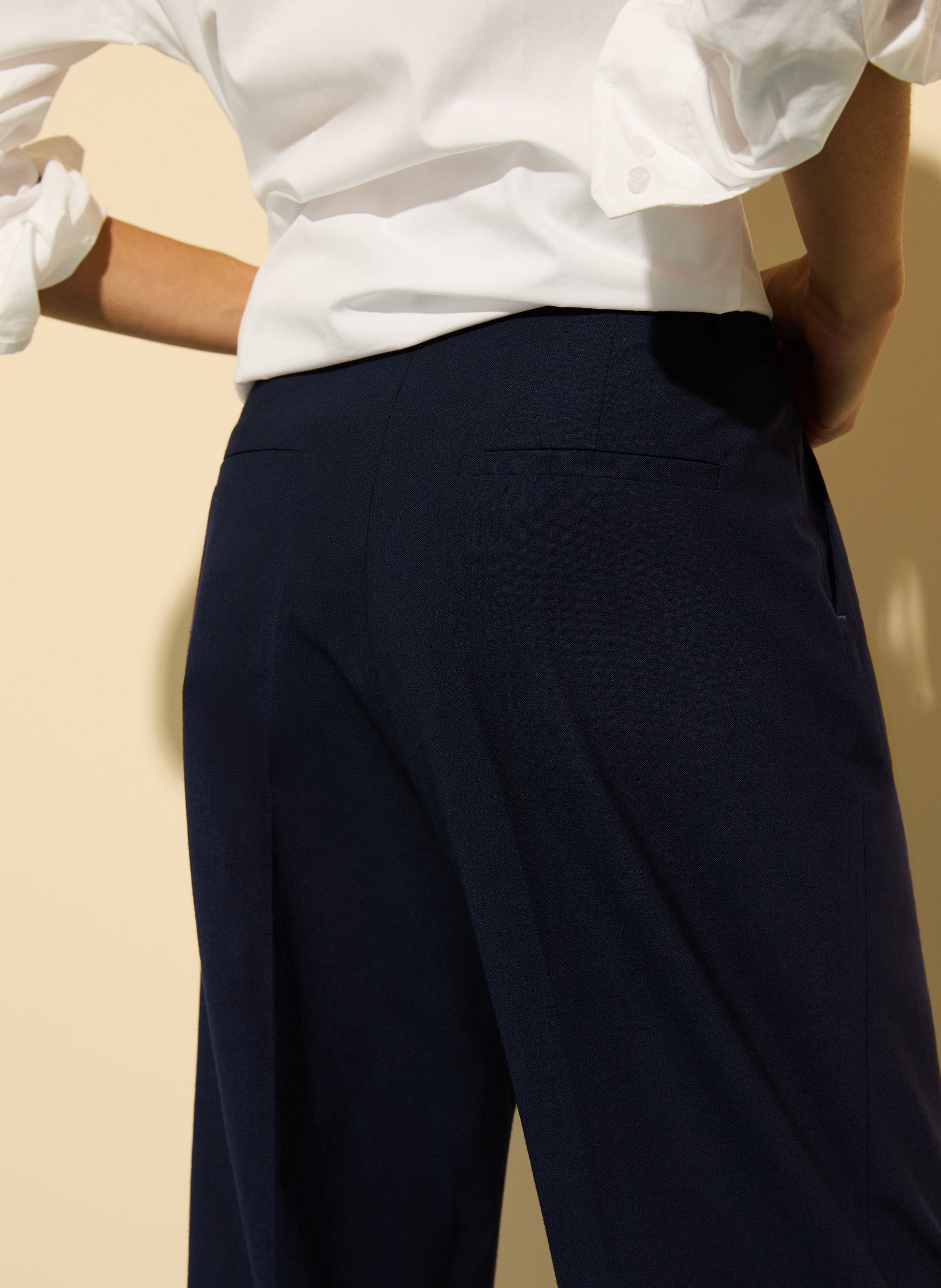 Wide-leg trousers aren't going anywhere, so we've created a tailored style in versatile, classic navy. This borrowed-from-the-boys style is made using fabric which would otherwise go to waste, and cut with a pleated front. Style them with a little black top and trainers, or with the matching Vanity Blazer and heels for head-to-toe co-ordination.