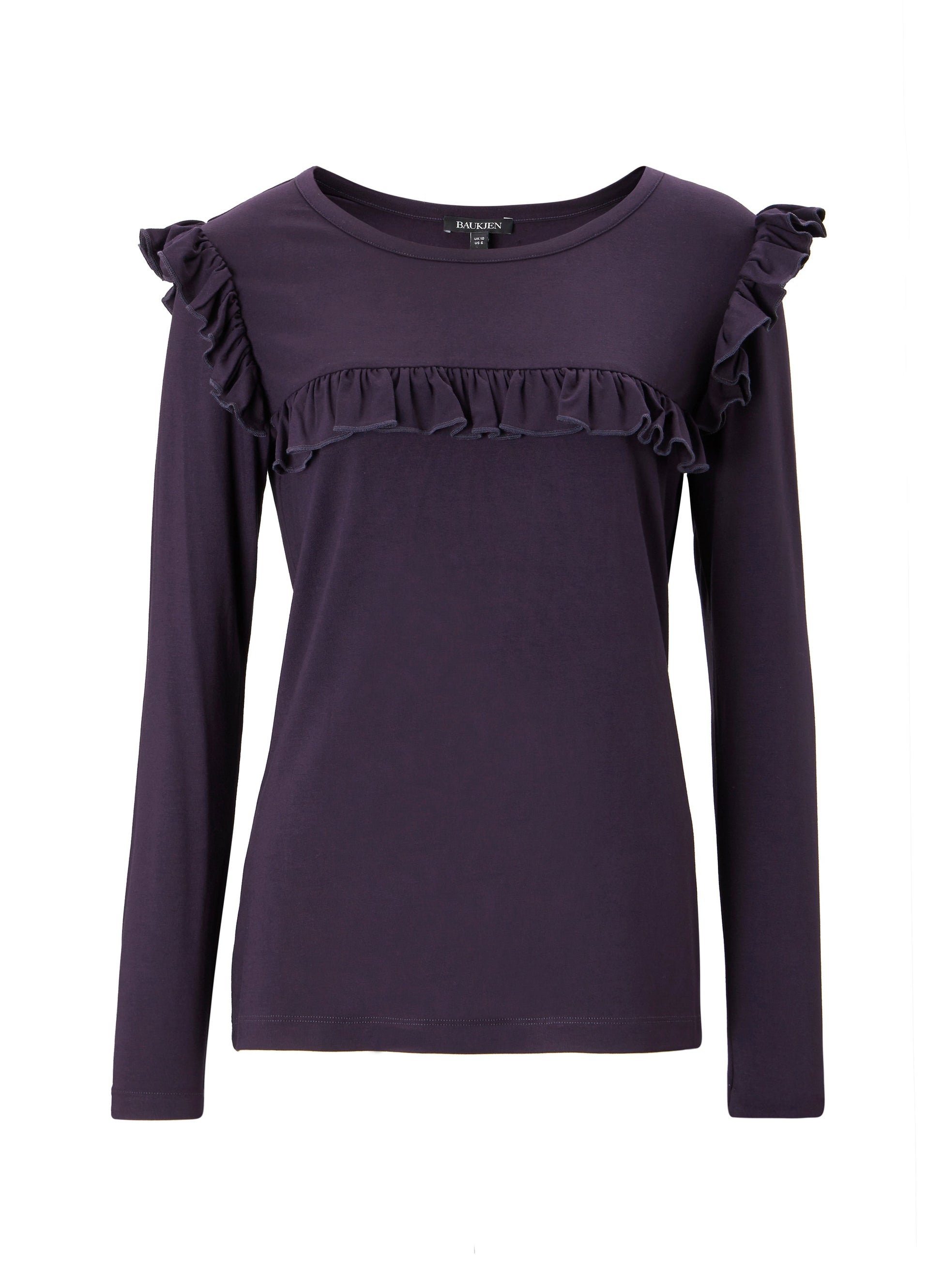 This is just the ticket to add a cool spin to off duty looks. With on-trend ruffles framing the shoulders and chest, it adds an extra special detail to a top that lifts your wardrobe.