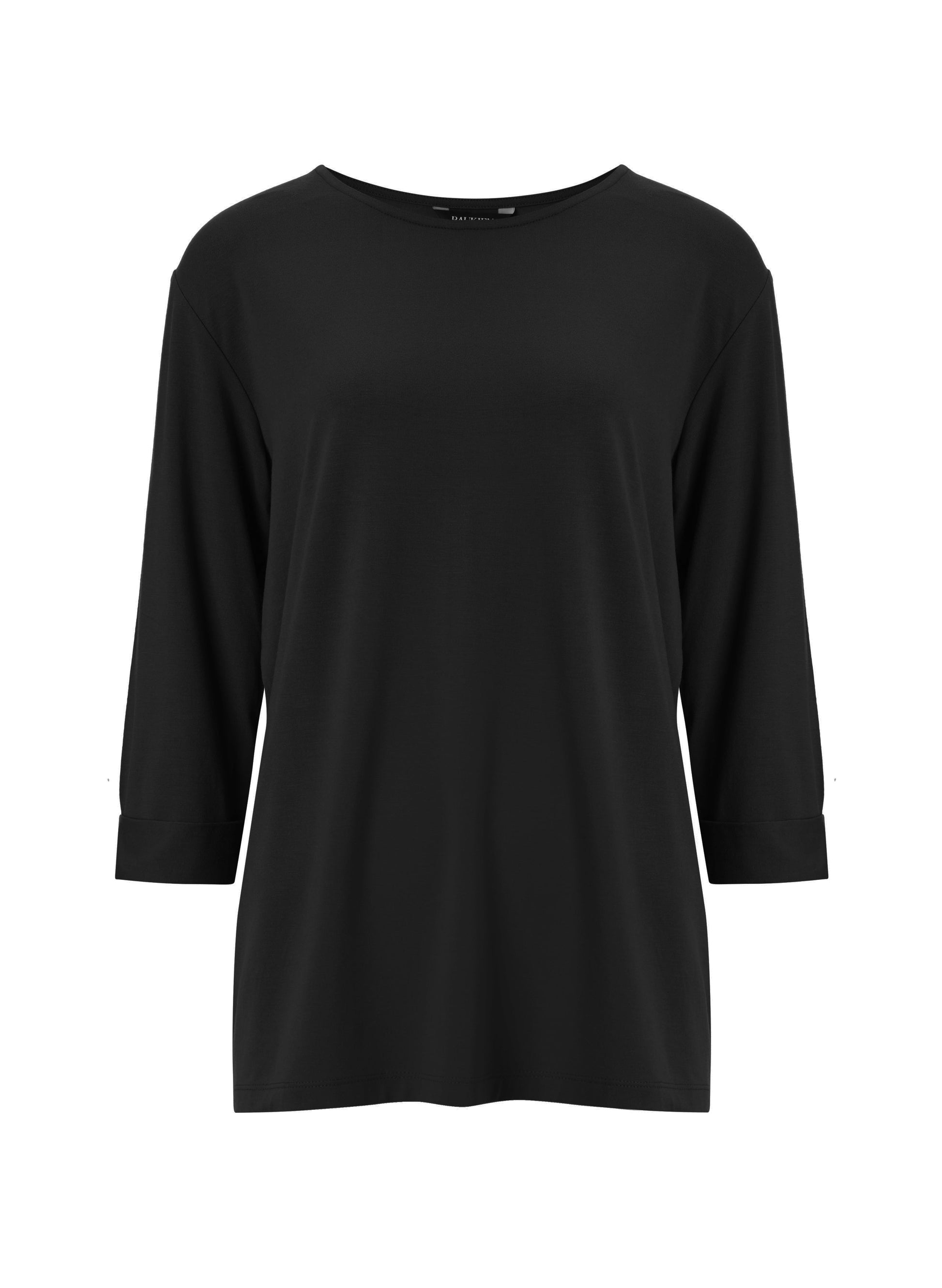 A comfortable, yet elegant wardrobe classic that can be worn with just about anything. 3/4 length sleeves with fixed roll up cuffs add chic details to the flattering EcoVero™ jersey Marnie Top. Just add jeans for easy elegance.