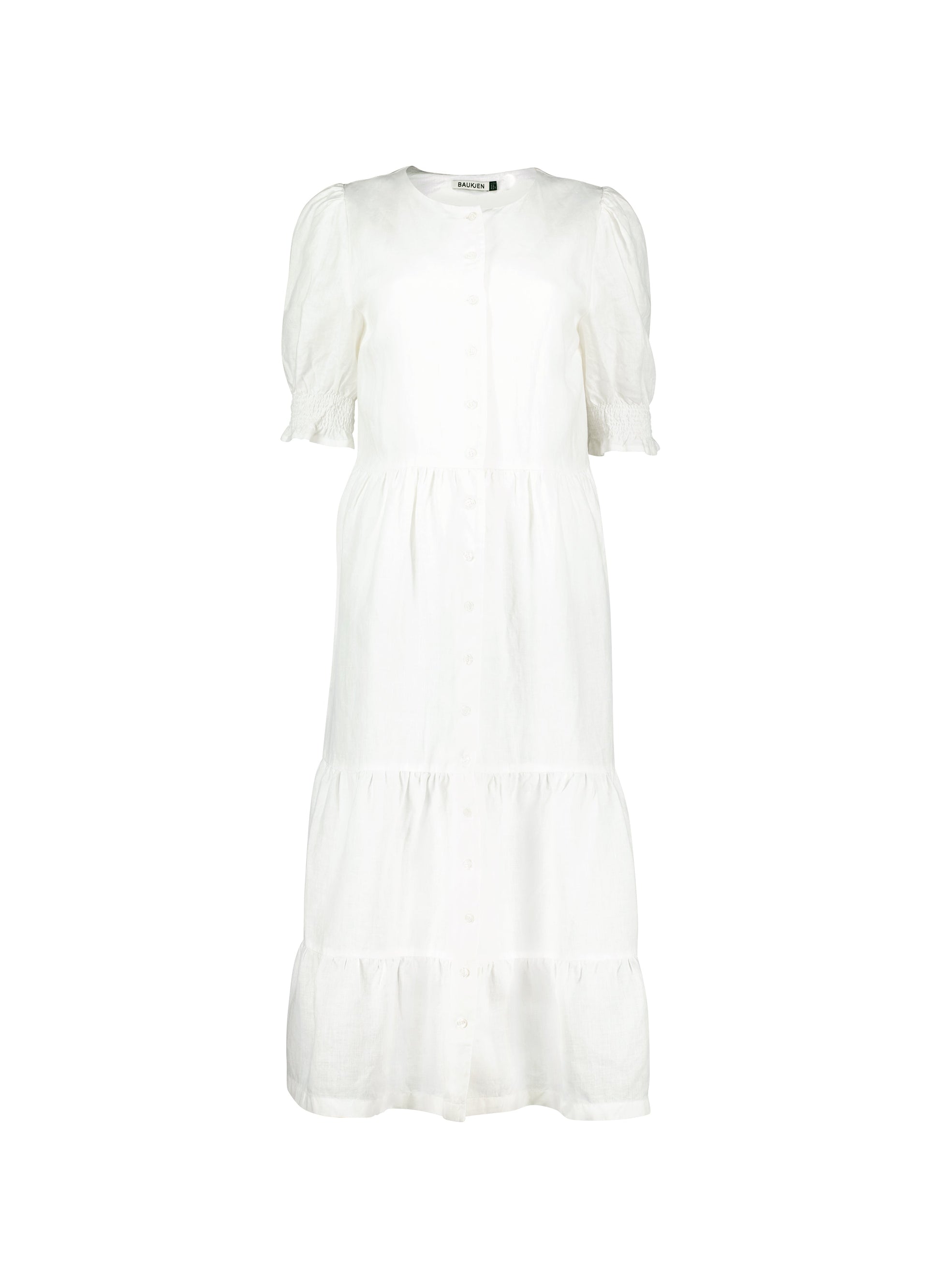 Hemp is your secret weapon in hot weather as it is natural and cooling - and responsible, which makes Maxine a winning day dress! This easy style fully buttons through and comes with voluminous tiers in the skirt. The sleeves finish just above the elbow and are smocked around the cuffs to hold their shape. Just add sandals and your favourite earrings.