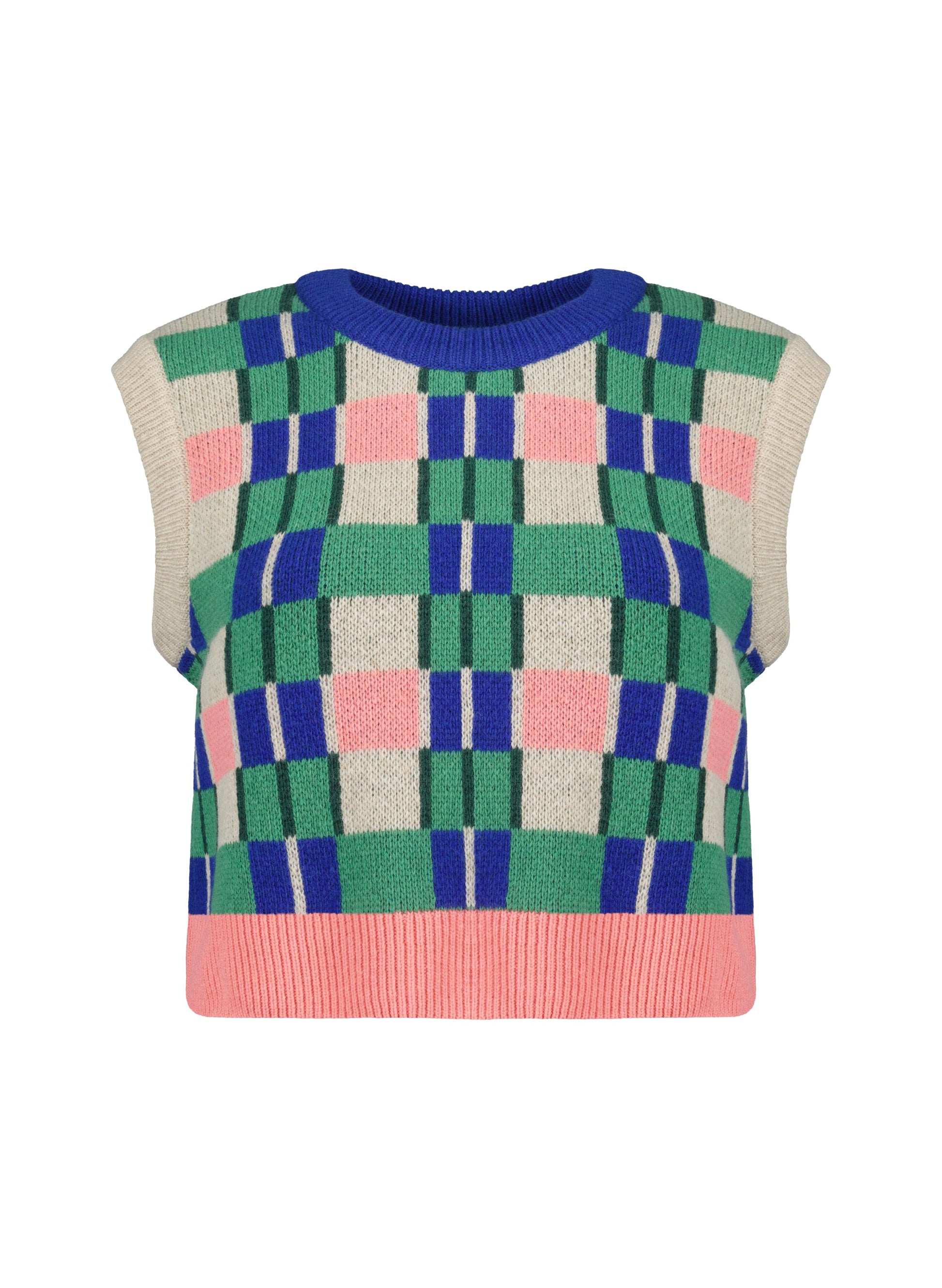Our Design Director Natalie has a soft spot for knitted vests, and this one celebrates her love of clashing unexpected colours together. A statement intarsia knit woven from a recycled wool blend, its joyful pops of pink and emerald will add a playful touch to a white shirt. You could also wear it on its own as a top with jeans. Either way, it’s sure to make your outfit sing.