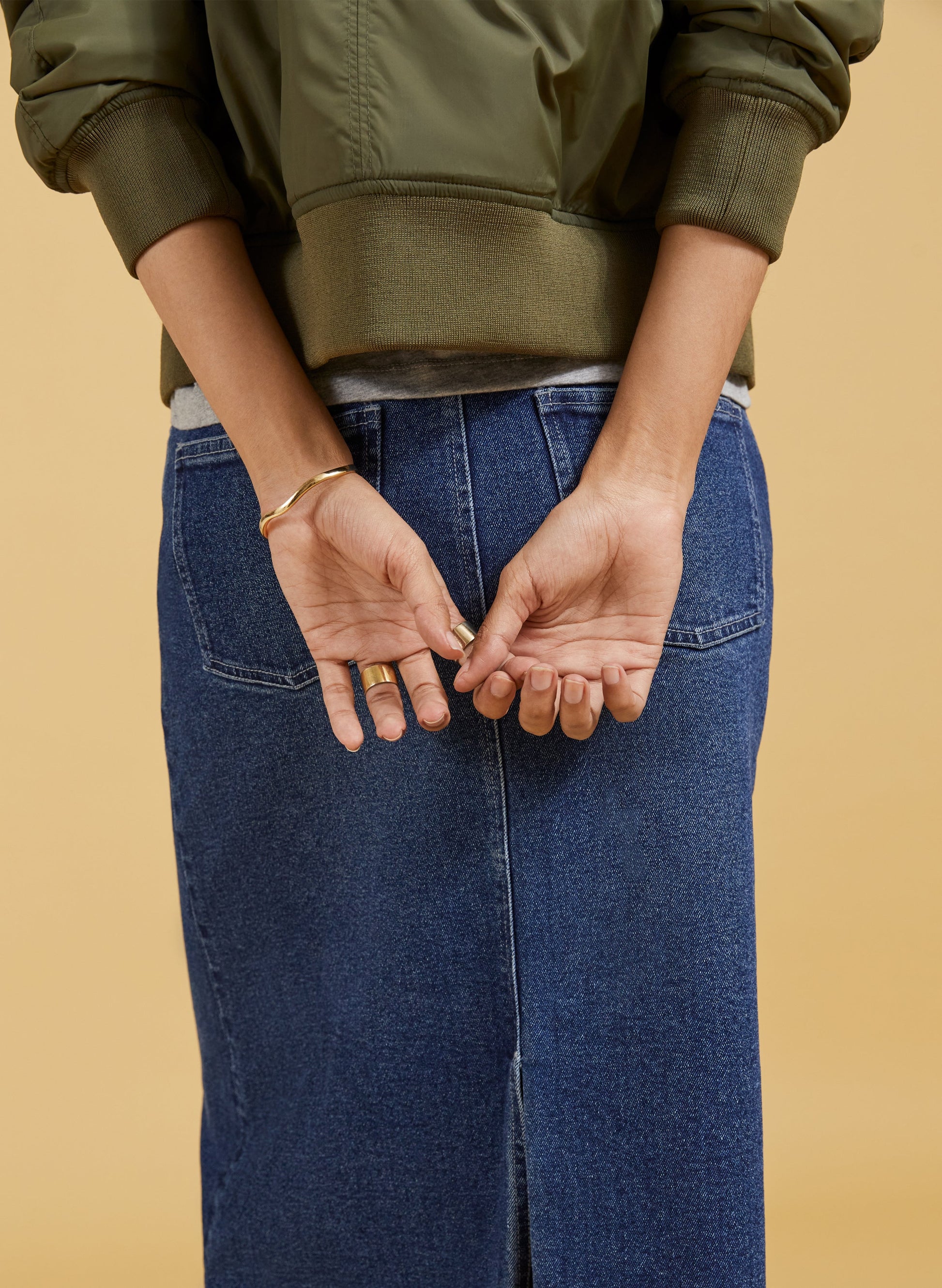 The Nia skirt is nostalgic dressing at its finest! This style in organic cotton denim is quite literally a jeans skirt, with the waistband and fastenings borrowed from a classic pair of jeans. It’s cut to hug the waist and hips before gently flaring out into an a-line shape. A casual saviour, we’ll be wearing it with tees, boyfriend shirts and bomber jackets.