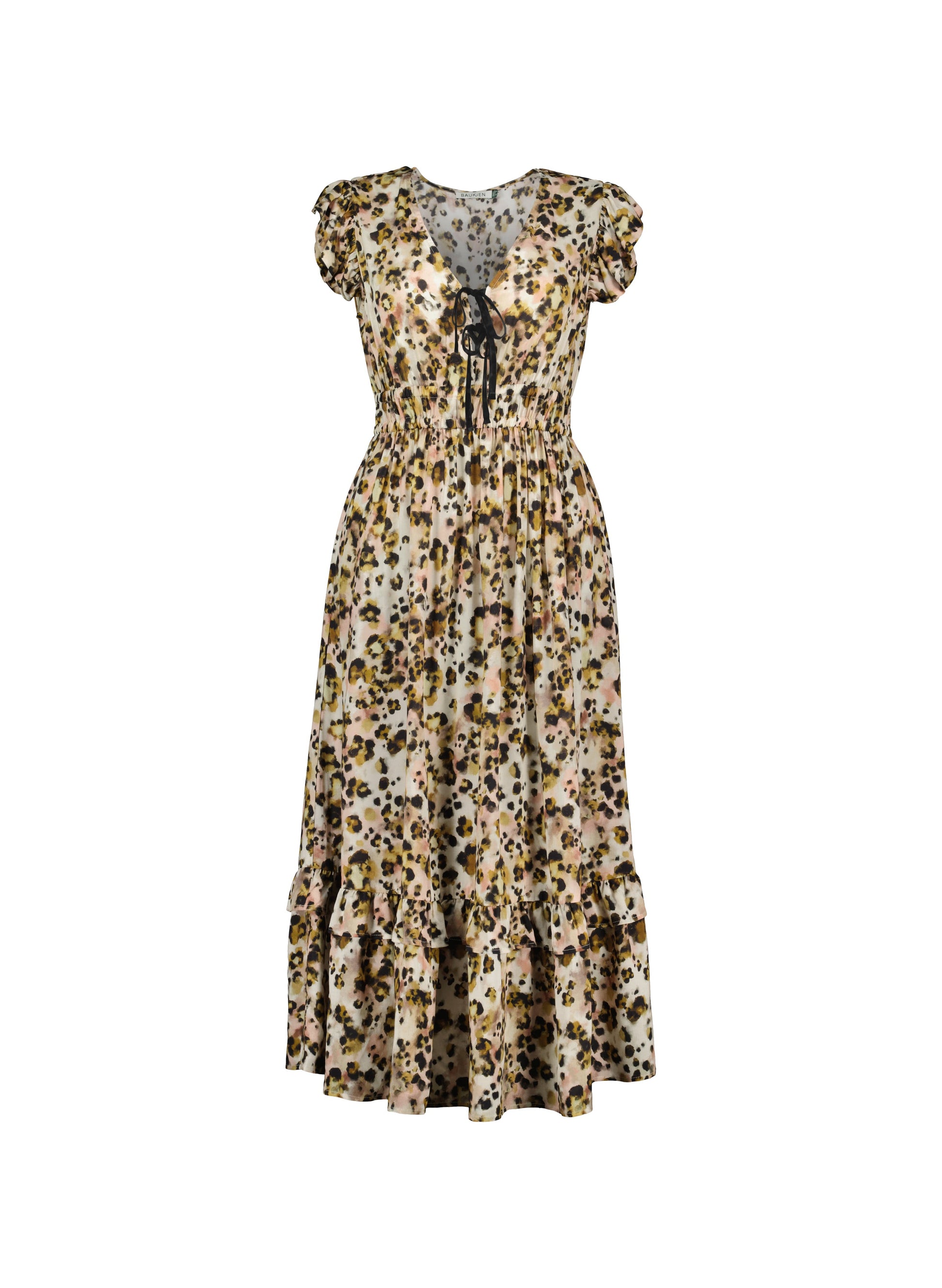 Your search for the perfect day-to-night midi starts and ends with the Philippine Dress! This pretty, lightweight style features a smudgy leopard print that is easy to style with all types of flats and heels. Feminine flutter sleeves cover the shoulders while elastic panels around the body gently define the waist. We’ve added tie details to the neckline and below the bust, along with our favourite feature of all: pockets!