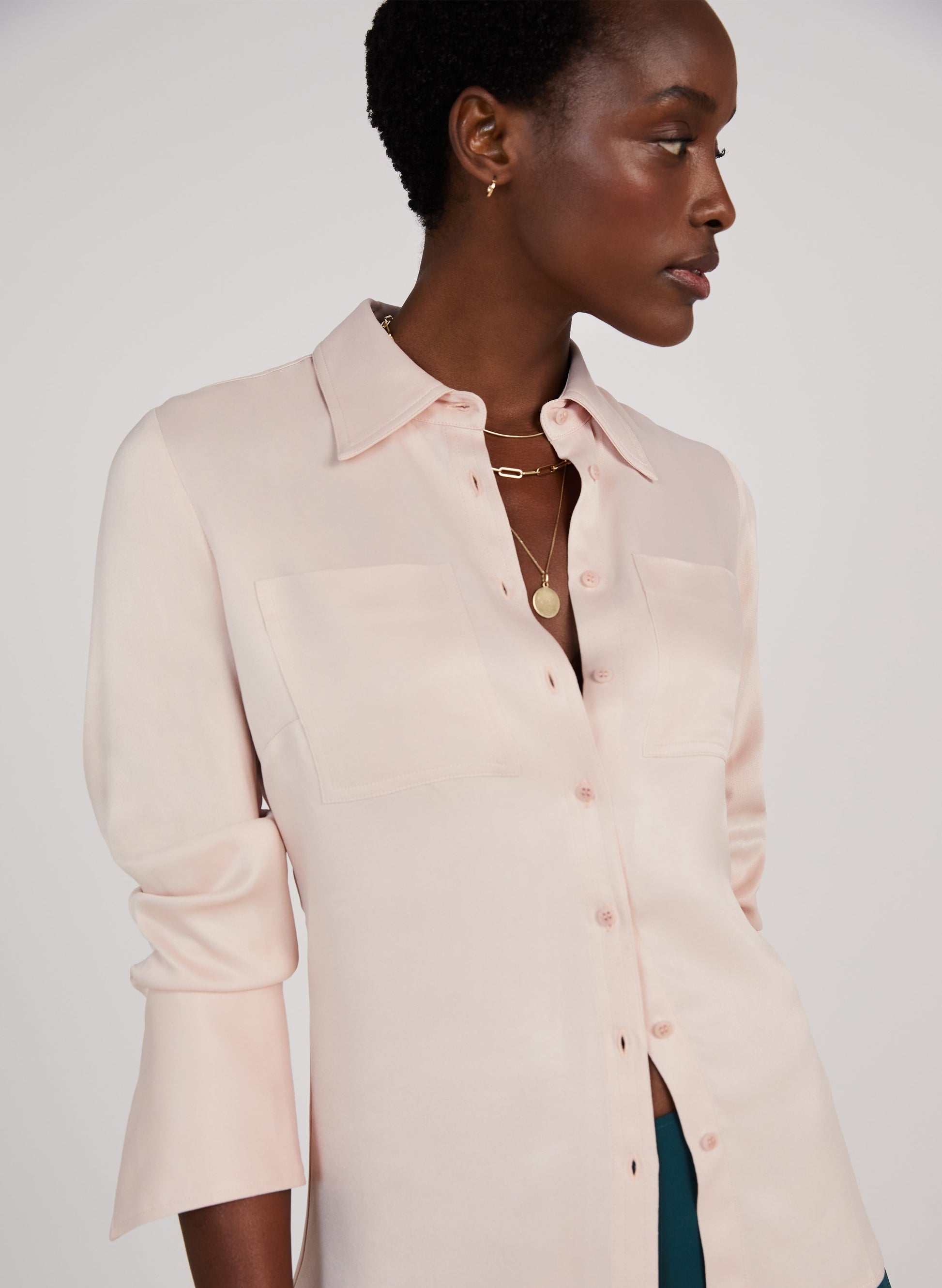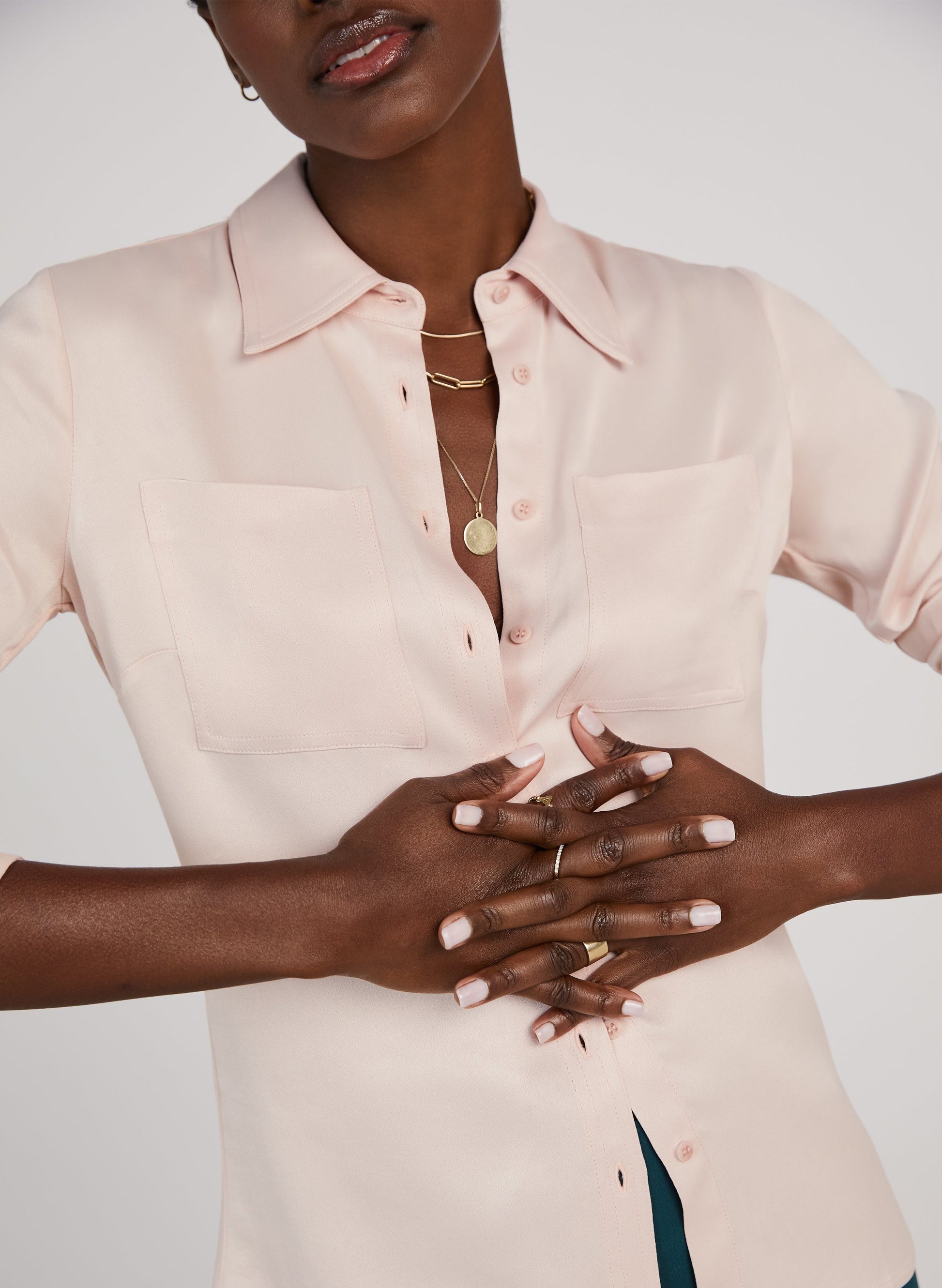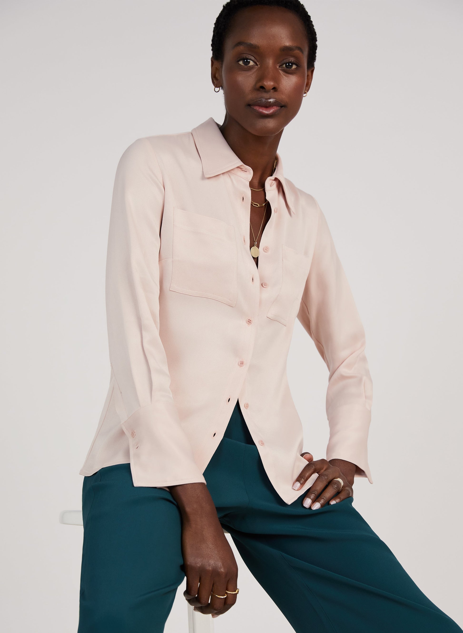 With a beautifully-cut shirt, you’re always halfway there to a chic outfit. Our new Piper style comes in an opulent-looking fabric called Ecojilin, which cleverly makes use of recycled cotton. Add to the mix a body-skimming fit, deep cuffs and a soft shade of pink with buttons dyed to match, and you’ve got yourself a new contender for the most desirable shirt. Dress it up with wide-leg trousers and you’ll be ready for anything.