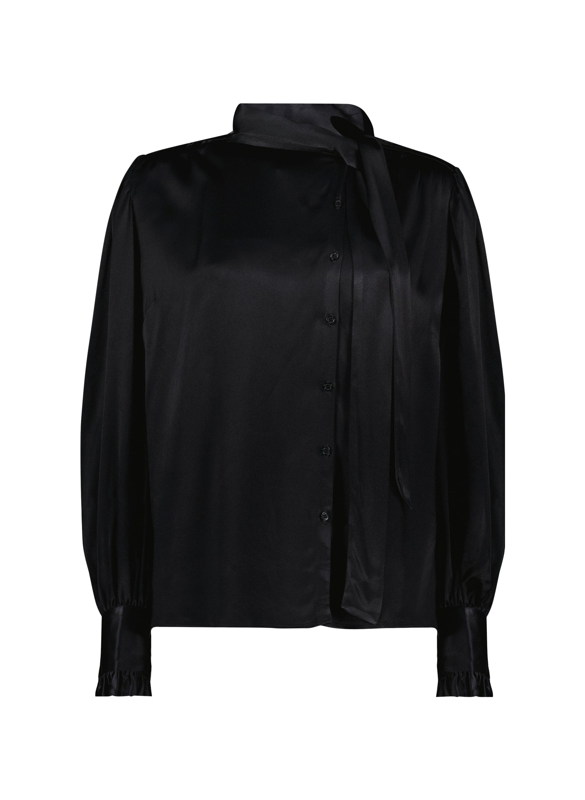 Glenda spells evening glamour without revealing an ounce of flesh. Beautifully cut with gathered shoulder detailing and a side neck-tie, it fastens with a panel of asymmetric buttons down the left side. Its jewel-like sheen is courtesy of Ecojilin, a viscose made from recycled cotton. Make this your go-to for parties with leather or tailored trousers.