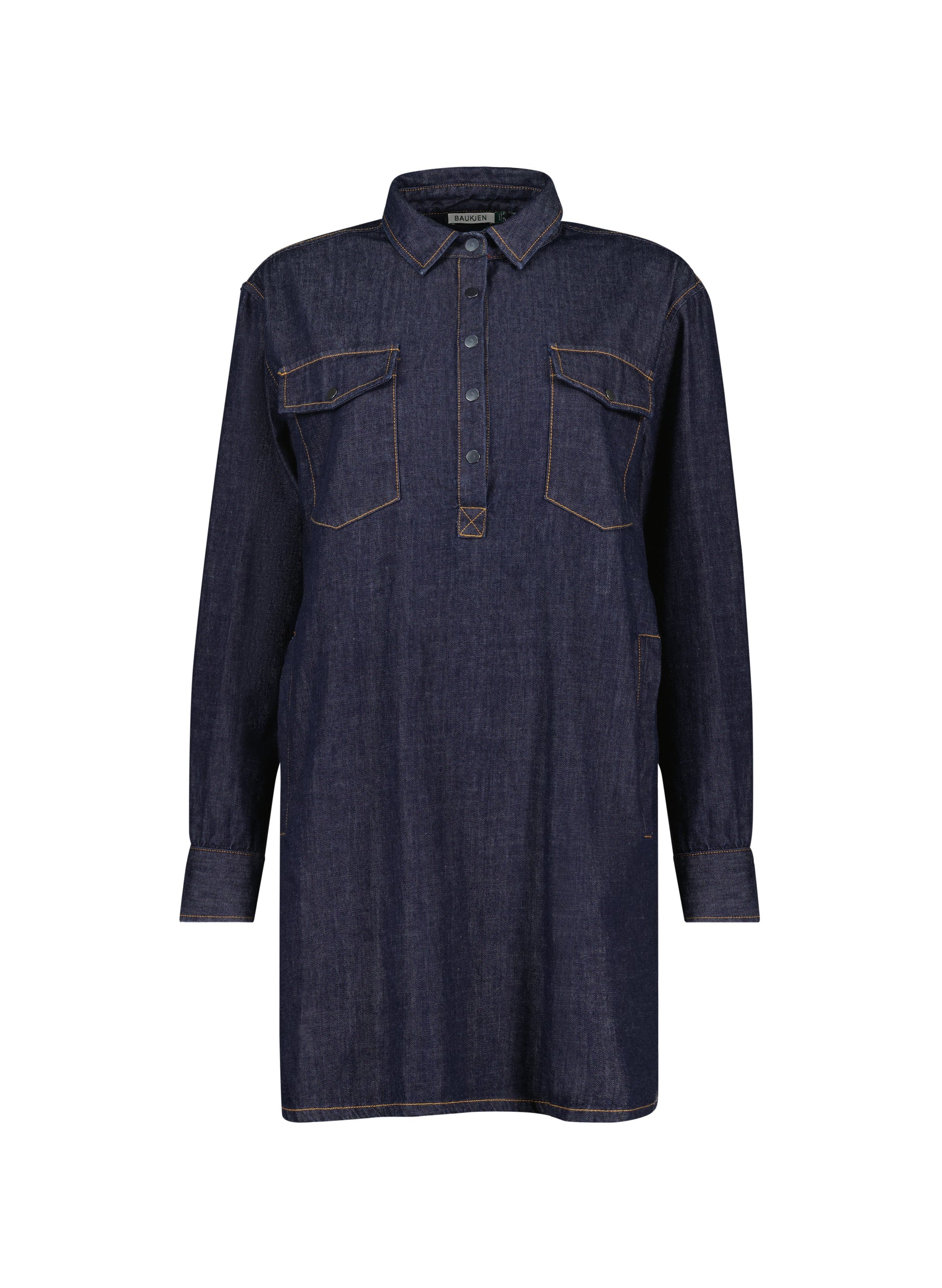 Marjolein is your easy, throw-on-and go shirt dress to wear with tights and boots. Slightly oversize, it comes in dark organic denim, making it easy to layer rollneck tops underneath. Embellished with a placket of front popper fastenings and patch pockets in butterscotch stitching, it's a casualwear hero.