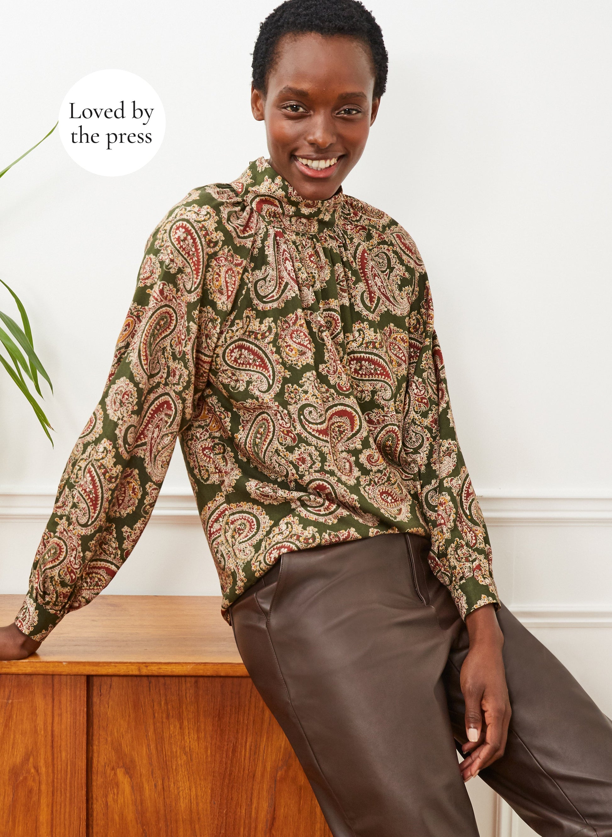 Crafted in our lightweight crepe and Low Impact Dyes in Autumnal Paisley print, the Regina top is the blouse you'll be reaching for on repeat. The elegant high neck and soft volume balances a modern cut, against a feminine print. Perfect to dress up or down as the days draw in.