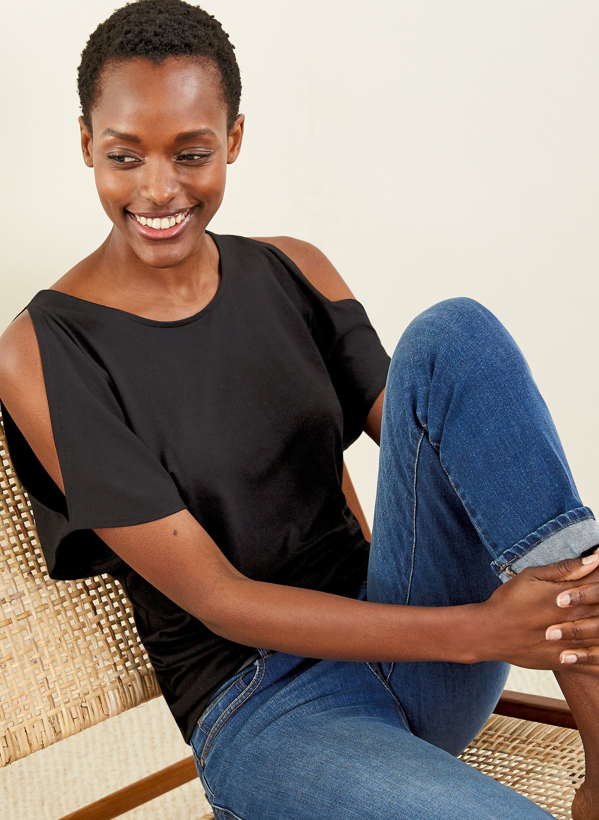 Flash a little shoulder this season with our best-selling Ros Top. it's easy to see why this style is such a hit: its wide neckline and cut out shoulders makes for a chic silhouette. Made using soft planet-friendly LENZING™ ECOVERO™ jersey, have fun dressing it up with denim, drop earrings and heels, or dressing it down and lounging in style with jersey trousers.