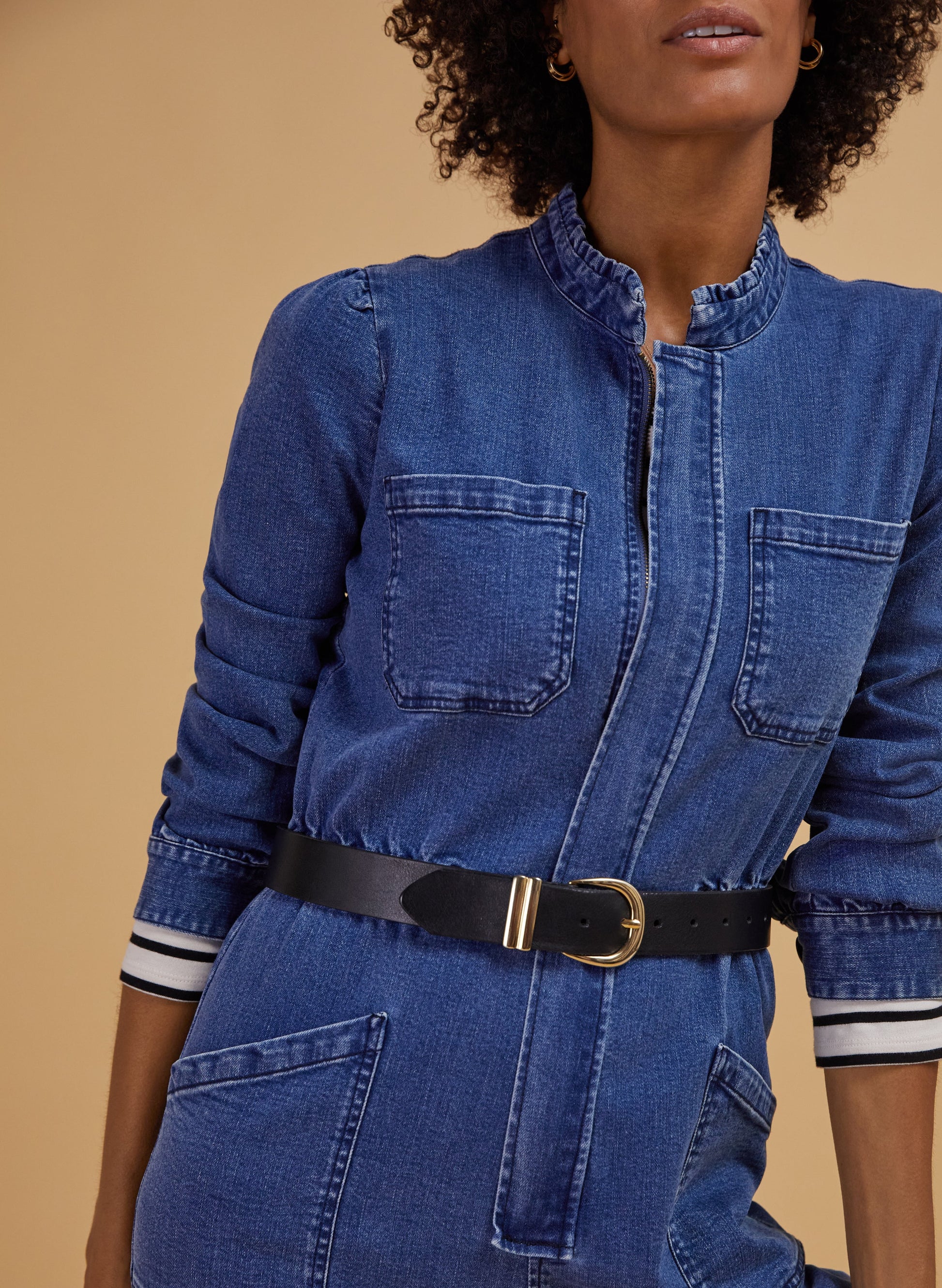 Sally is quite literally a one-piece wonder! A feminine take on a boiler suit, we’ve added a subtly frilled stand collar and gathering into the shoulders. And for a flattering fit: a tapered leg shape and an elasticated waist. There are so many ways to style it - worn open with a tank (or turtleneck) and hi-tops, or fully fastened with big hoops and heels. Either way, expect to wear it on repeat.
