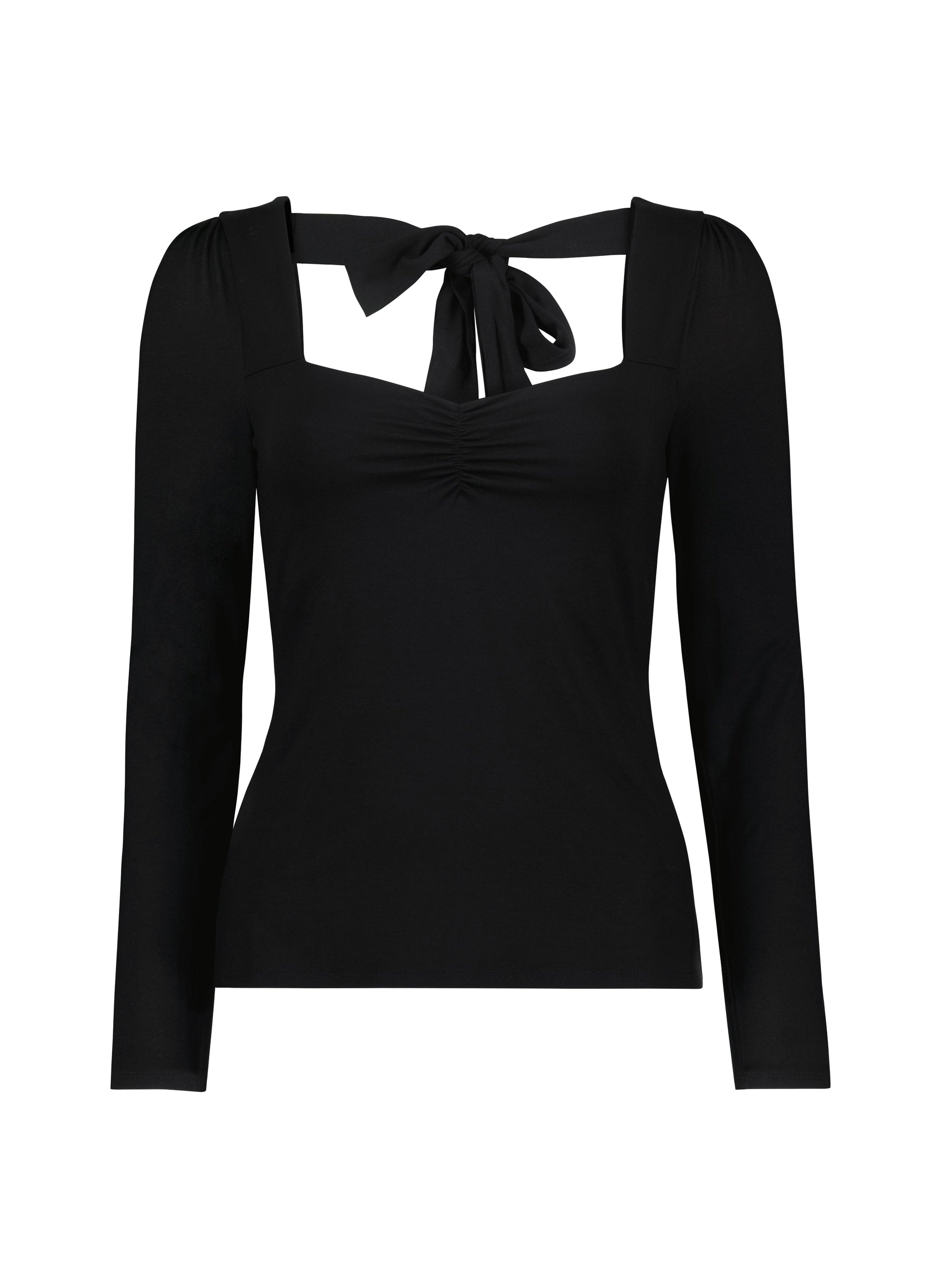 Say hello to the prettiest top with sleeves! Tiffany features a sweetheart neckline which elegantly frames the chest, and a cut-out back with ties which fasten into a statement bow. The result is a going-out top that's chic, comfortable (thanks to stretchy jersey) and all you need to elevate a pair of jeans or leather trousers.