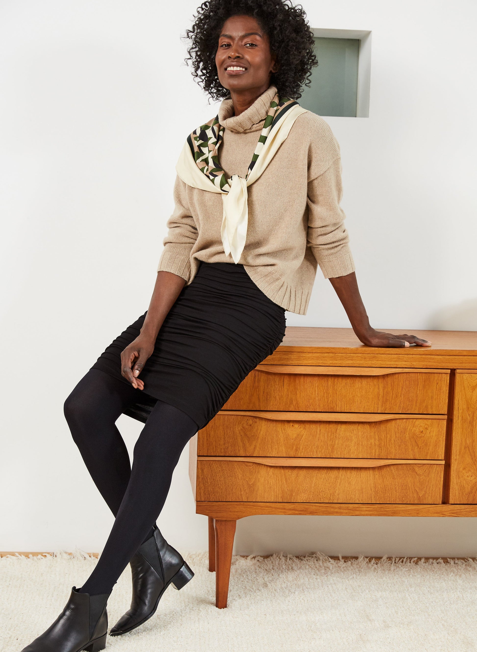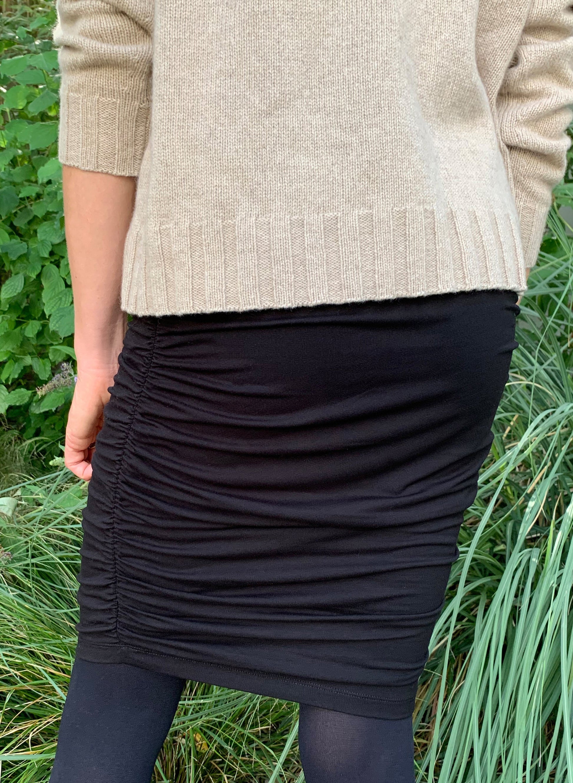 Elasticated ruching along both side seams keeps the Yara skirt super comfortable whilst adding an elevated design element. The “modest mini” not-too-short, not-too-long length sits above the knee and allows the flattering fit to hug the hips. A great addition to any wardrobe.